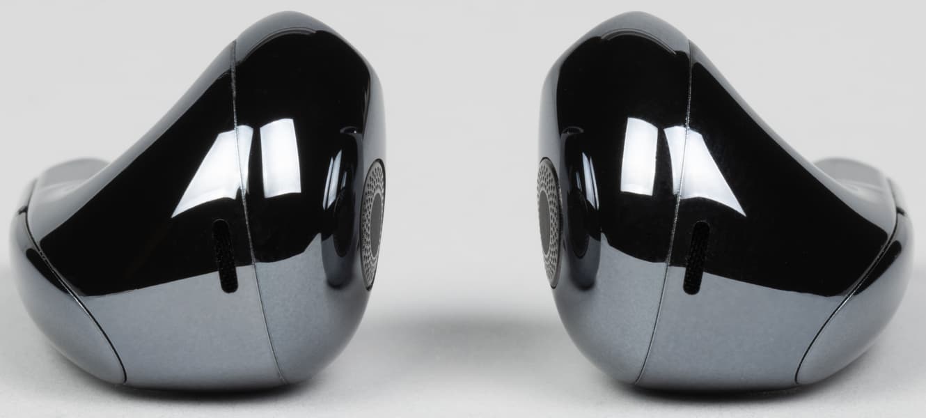 Отверстия щелевидные и смещены на внутреннюю сторону, что потенциально слегка защищает микрофоны от «задувания» в ветреную погоду и при активном движении.