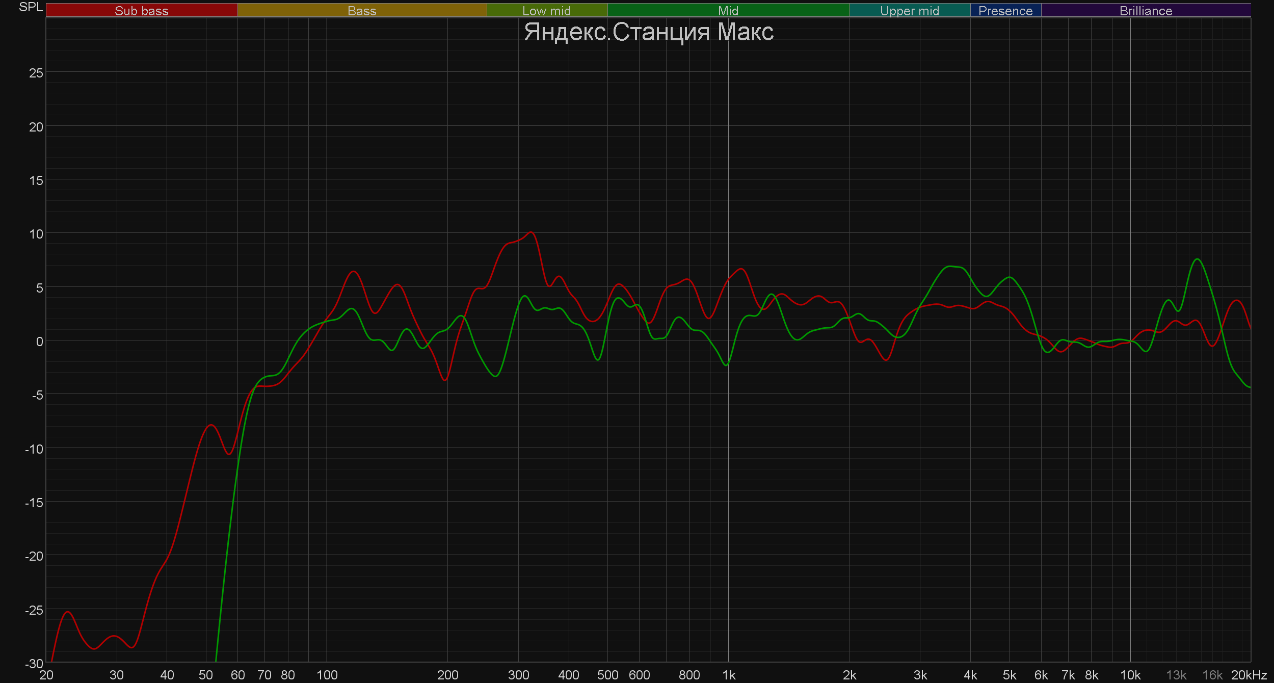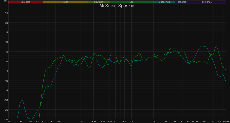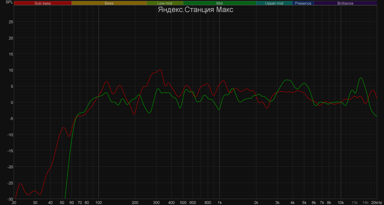 Новая «Станция» — уже не столько смарт-колонка, сколько центр «умного» дома. Тем не менее, ее звучанию производитель явно уделил немало времени. В очередной раз отметим, что все компактные устройства обладают компромиссным уровнем качества воспроизведения музыки, практически любая даже самая простенькая Hi-Fi система будет звучать намного эффектнее. Но все же надо отметить, что слушать музыку в фоновом режиме смарт-колонки позволяют отлично. «Яндекс Станция 2» в этом отношении порадовала отдельно: тут и низкочастотный диапазон присутствует, и средние частоты вполне проработаны и даже ВЧ-регистр в наличии. В общем, шаг вперед явно сделан, причем большой. Это прекрасно видно по графику АЧХ.