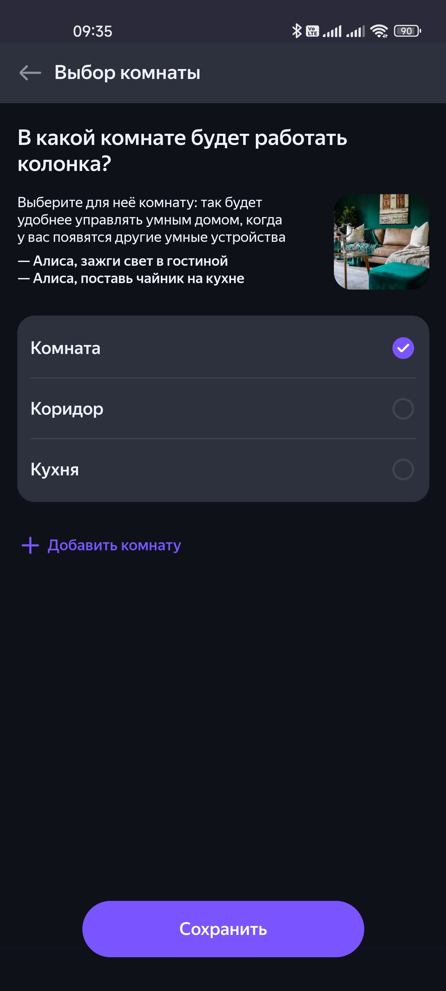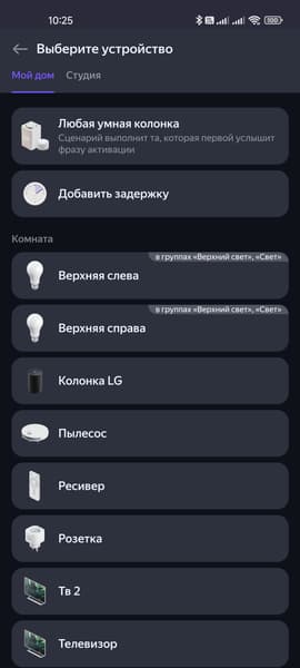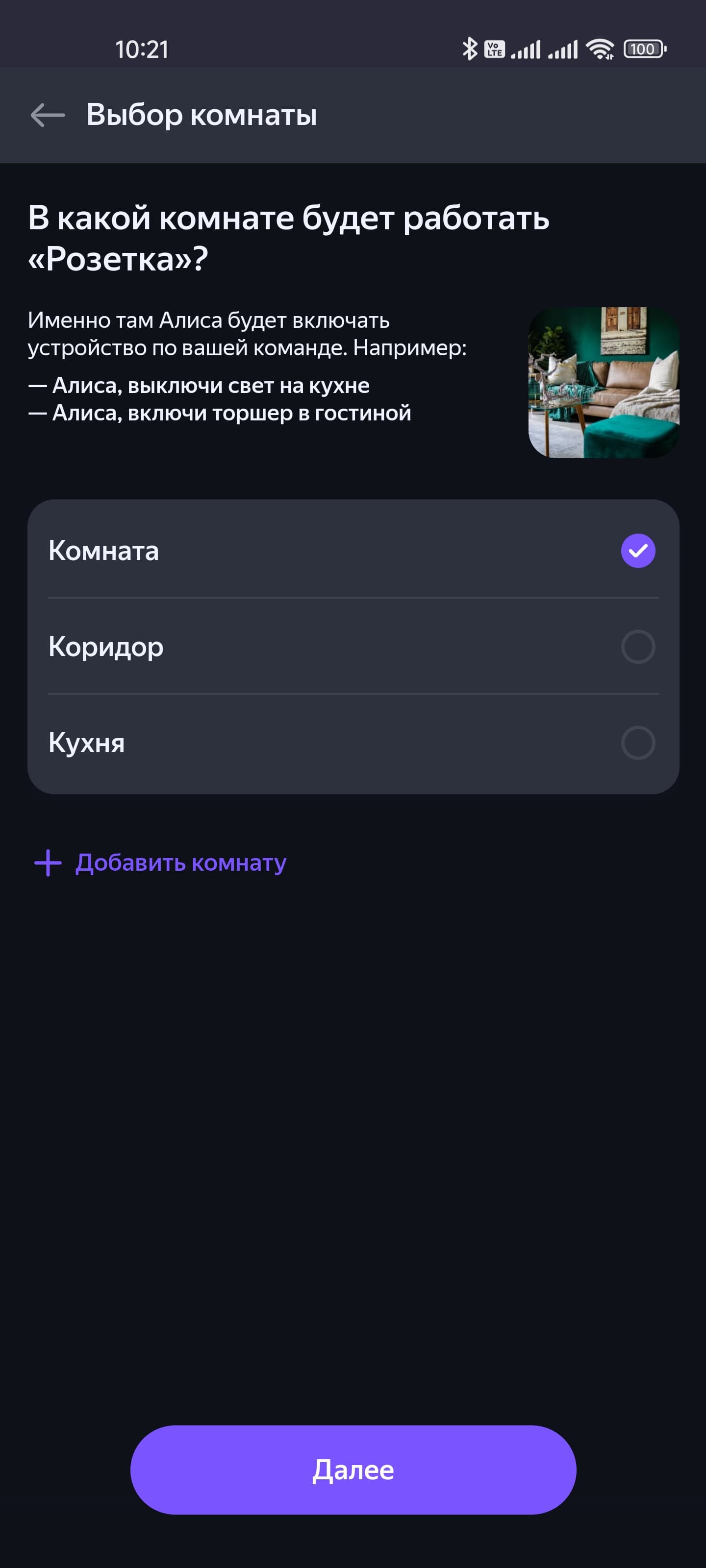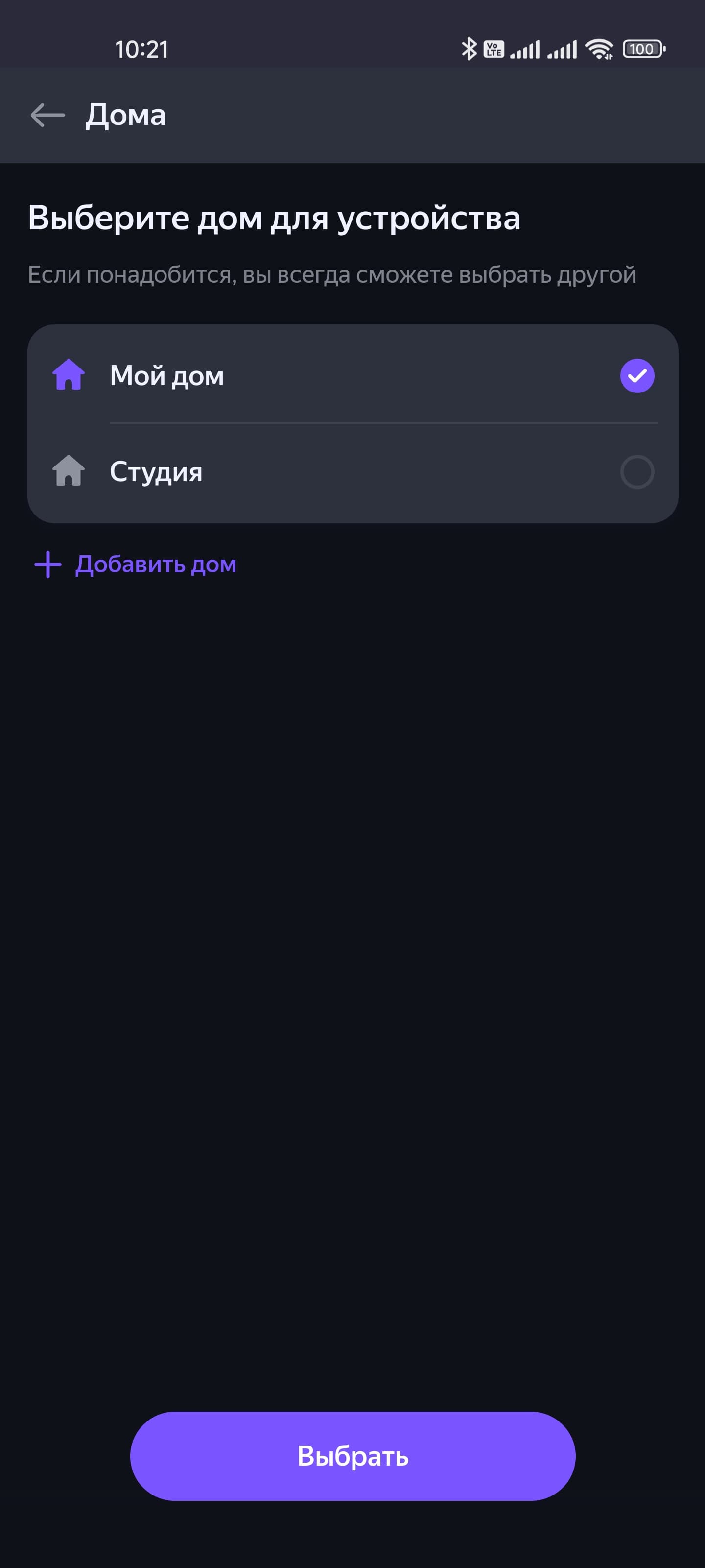 Начинаем добавлять устройства. Подробно покажем процесс на примере розетки, потом будем останавливаться только на ключевых моментах. Приложение подробно описывает все необходимые действия, запутаться будет крайне сложно. После подключения выбираем дом, в котором устройство будет работать, комнату — все как мы видели чуть выше, когда подключали колонку.