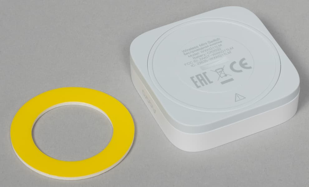 Для монтажа датчика на ножку или другую поверхность в комплекте есть круглый кусочек двустороннего скотча.