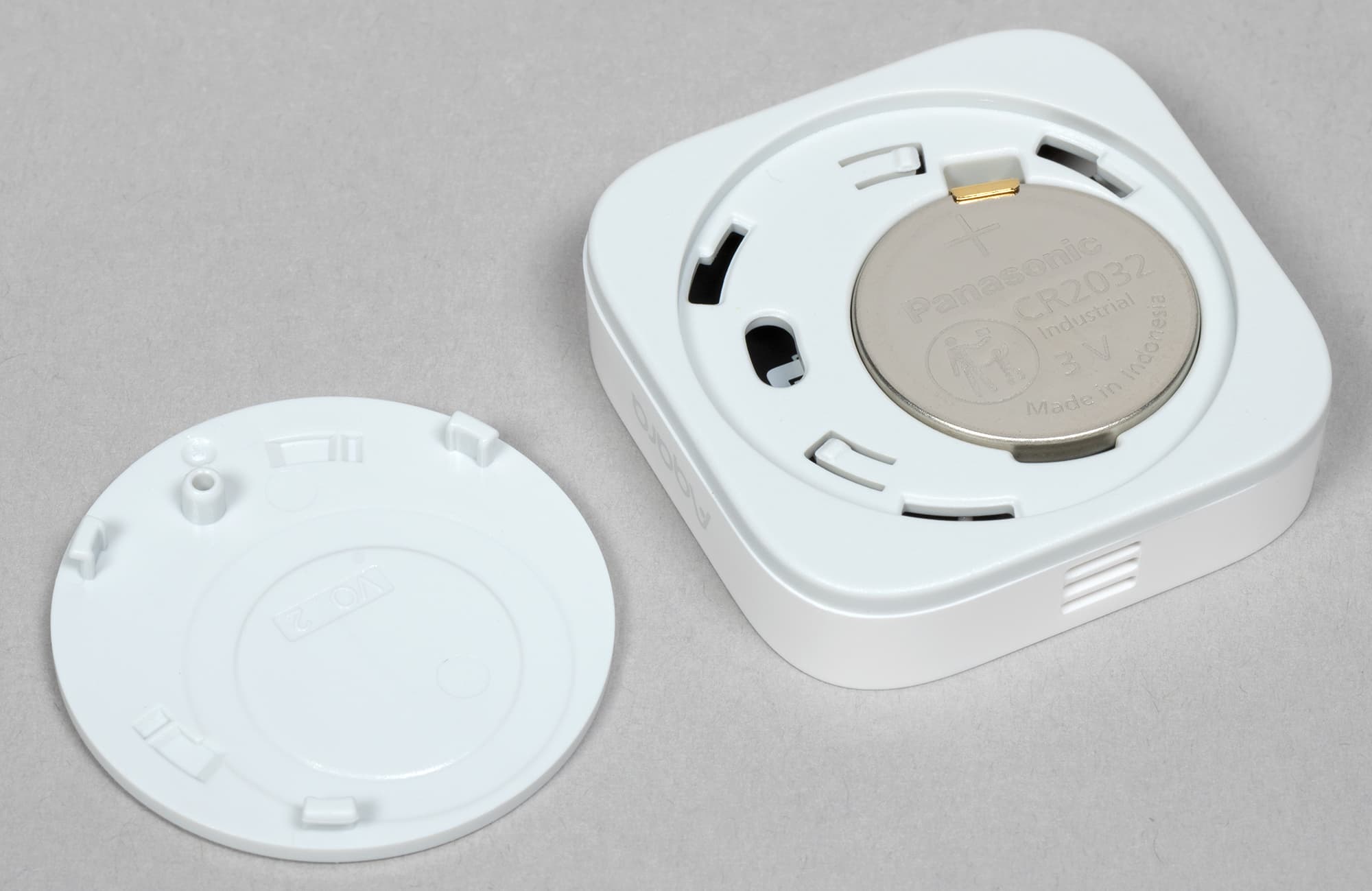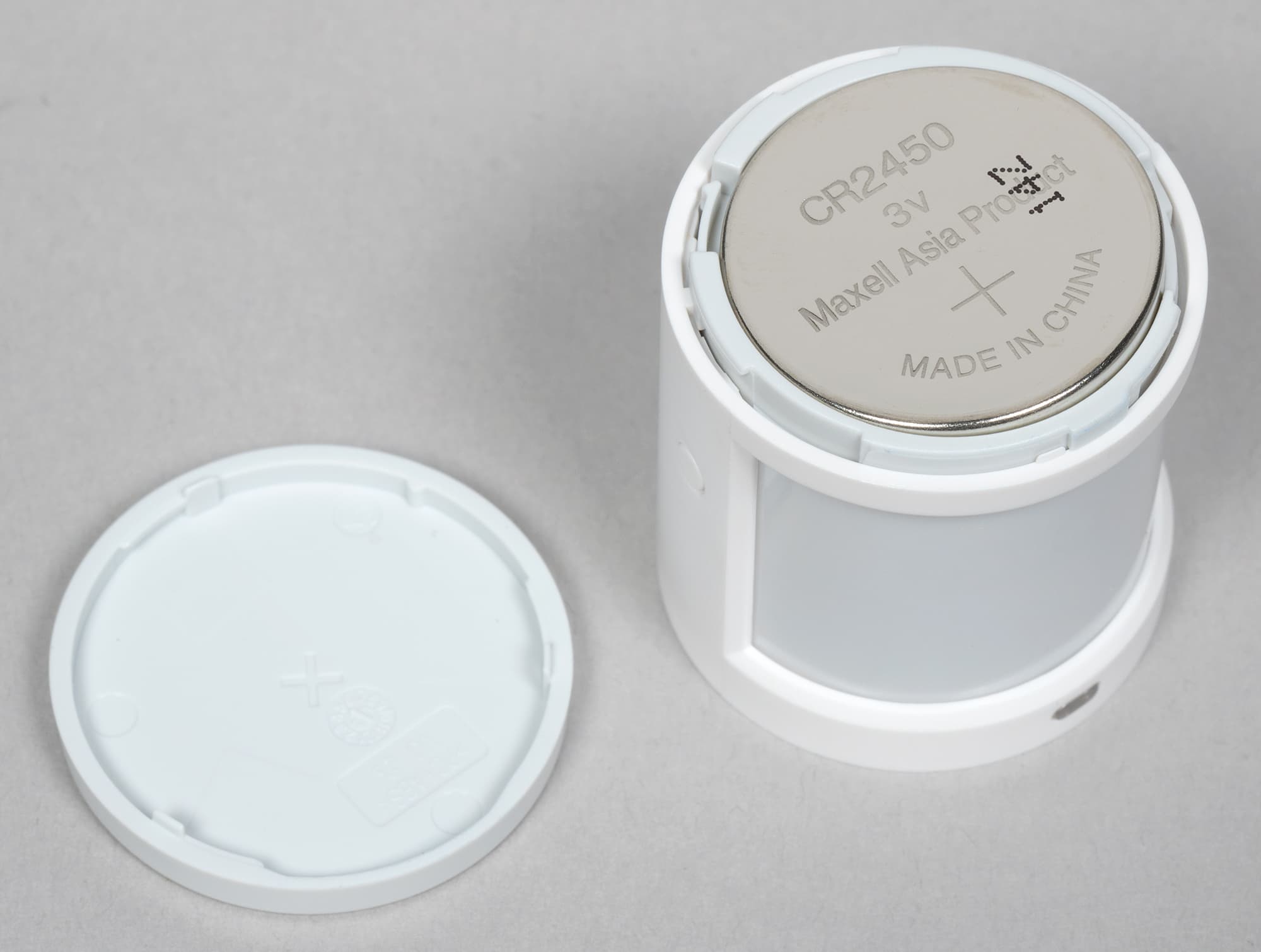 Крышка снимается поворотом против часовой стрелки, для питания используется элемент CR2032.