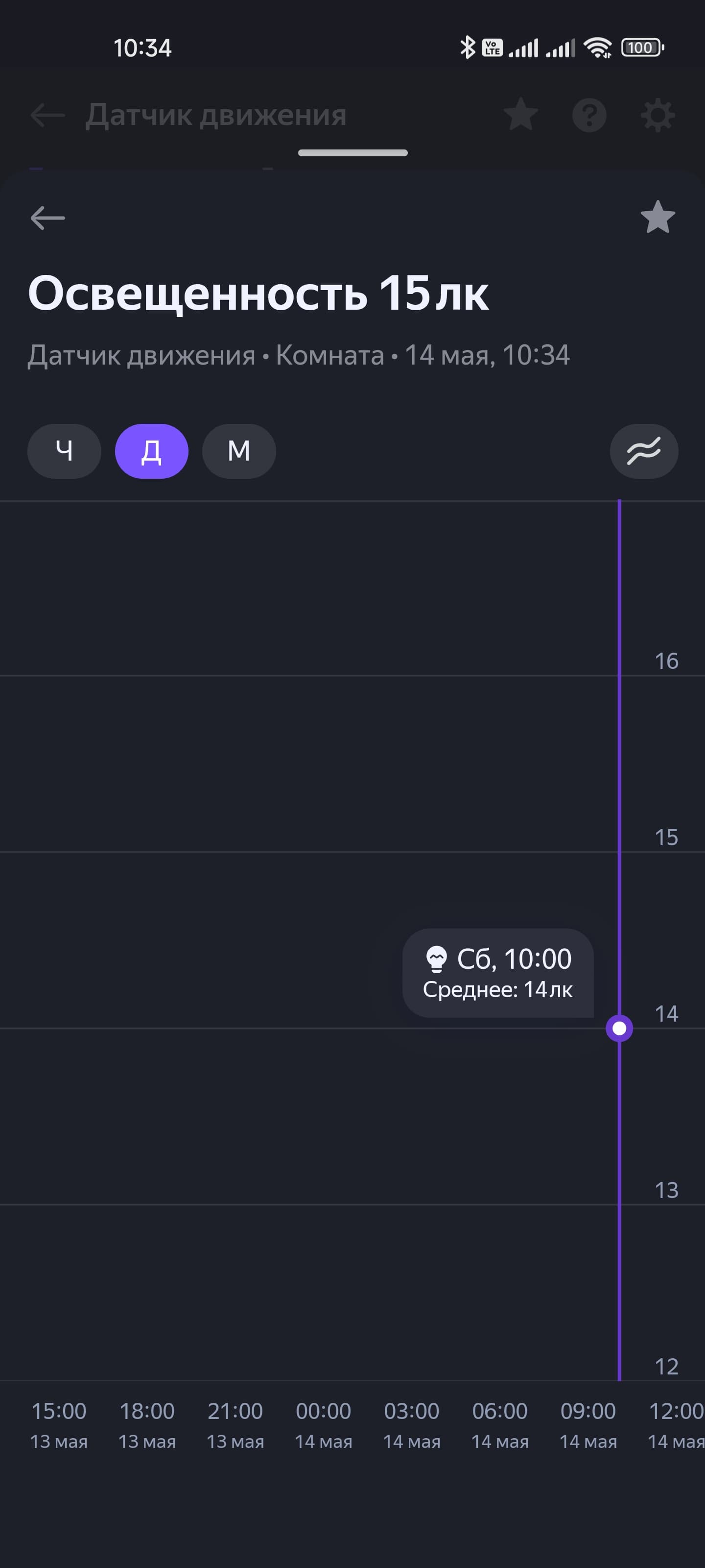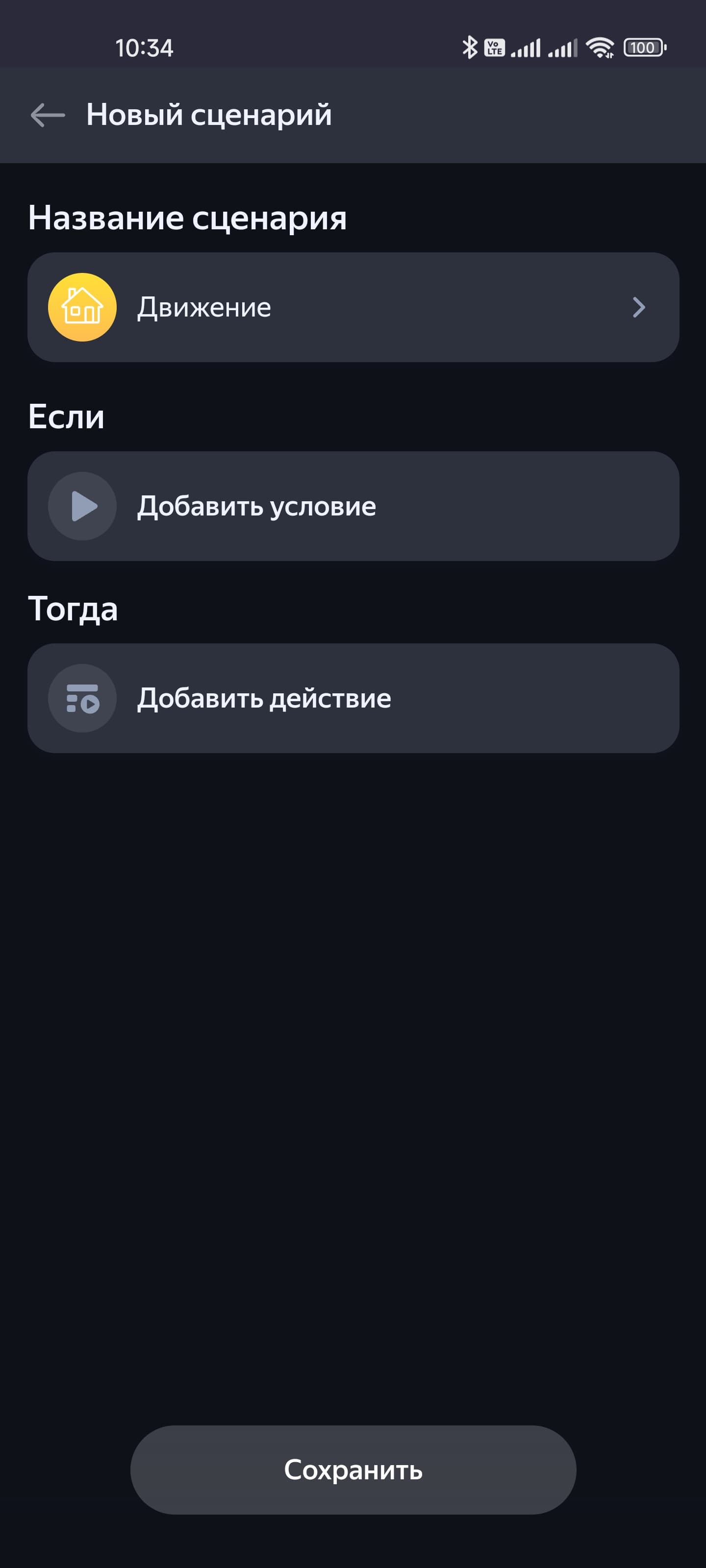 Датчик движения записывает историю срабатываний и изменения уровня освещенности — ее можно найти на странице устройства. Ну и опять-таки добавляем сценарий.