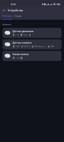 Ну и, наконец, посмотрим на все устройства в работе. Розетке мы дали два имени: непосредственно «розетка» и «вентилятор» — как видно, срабатывание происходит при использовании обоих. Датчик температуры позволяет нам спрашивать у Алисы, какая температура в комнате, датчик движения — просто срабатывает от движения. Действие по нажатию кнопки запускается с небольшой задержкой, но в большинстве случаев это не критично. Все типы нажатий регистрируются корректно. Ну и под конец немного посмотрим на подсветку верхней панели.