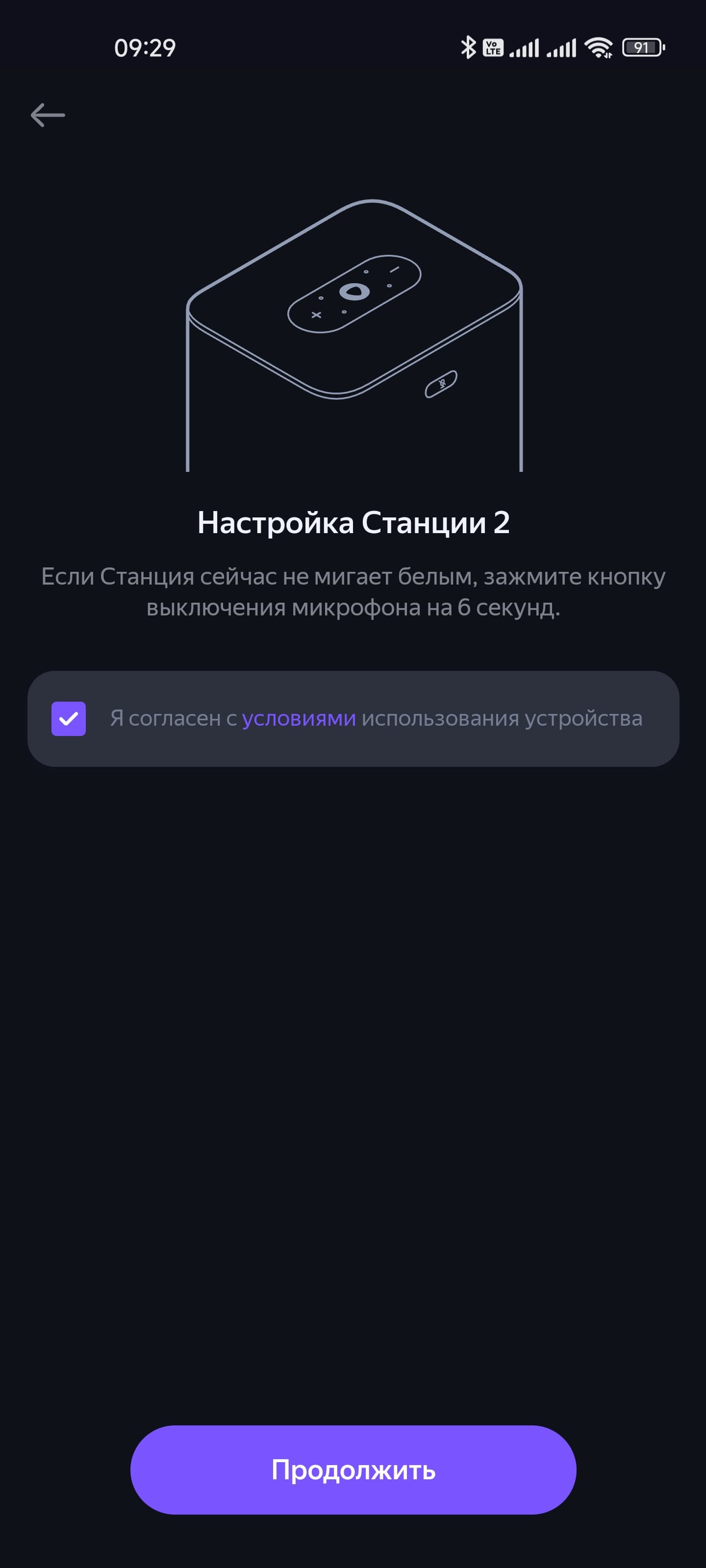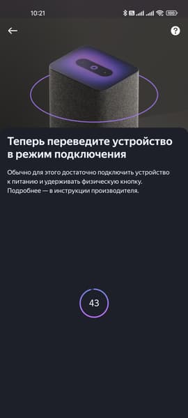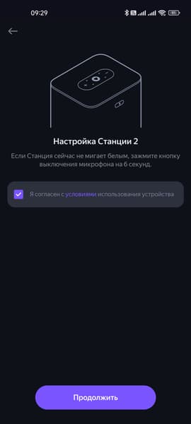 Подключение «Станции» и раньше не представляло особых трудностей, а в новых версиях все упростилось совсем уж до предела. Включаем блок питания в сеть, подключаем его к колонке. Если это происходит впервые, она немного «задумывается» после чего Алиса начинает рассказывать, как жить дальше: установить приложение… Если вдруг этого не произошло — зажимаем кнопку отключения микрофона на задней стенке.