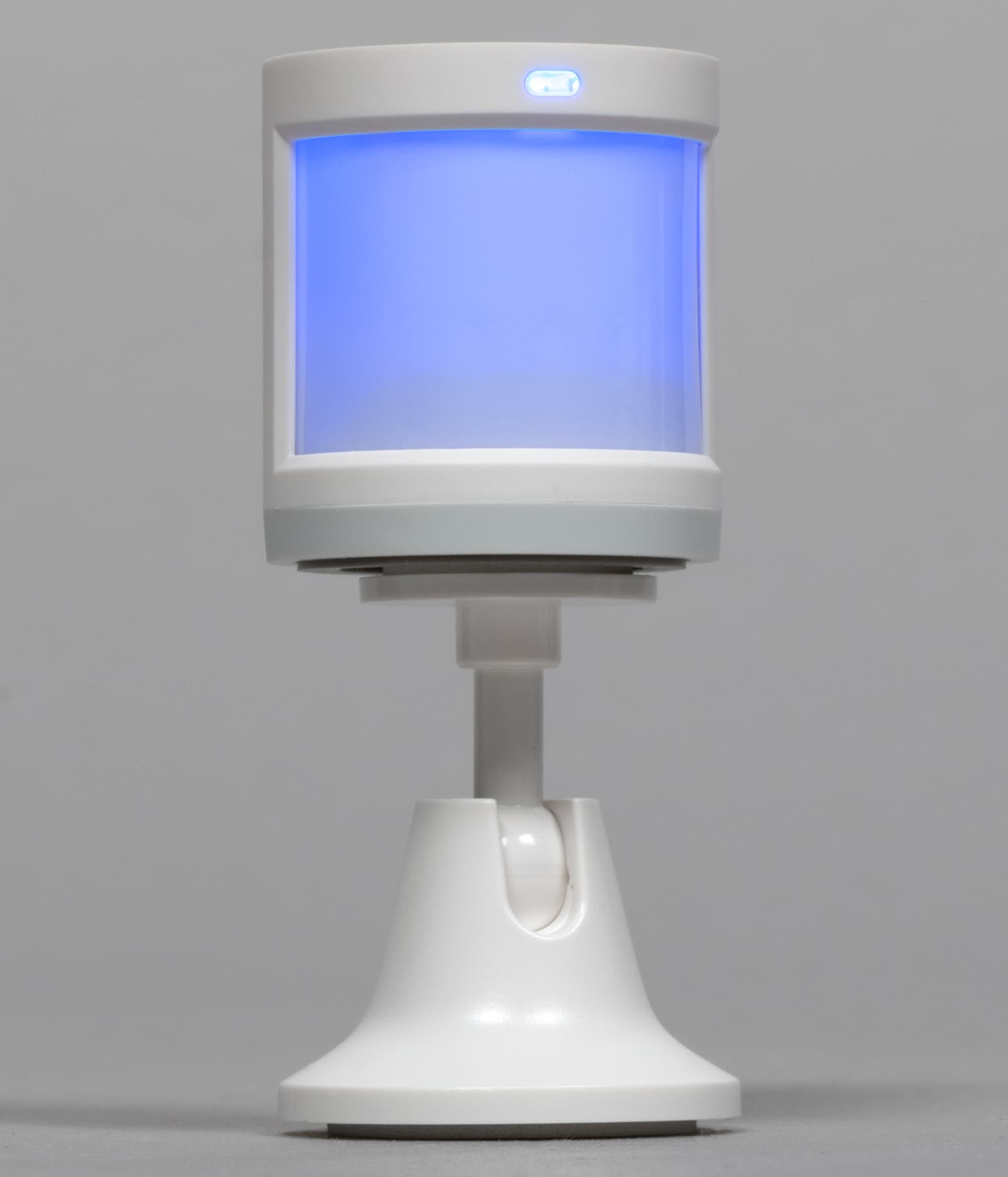 Высота смонтированного на ножку датчика — 70 мм. В верхней части корпуса размещен светодиодный индикатор работы, подсвечивающий окошко на передней панели синим цветом.