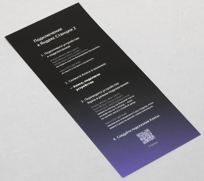 Инструкции выполнены в виде карточек — просто, удобно и доходчиво. Сказано в них только самое основное: как включить, как подключить, как настроить… Про остальное создатели устройства предлагают спросить голосовую помощницу Алису, что логично.