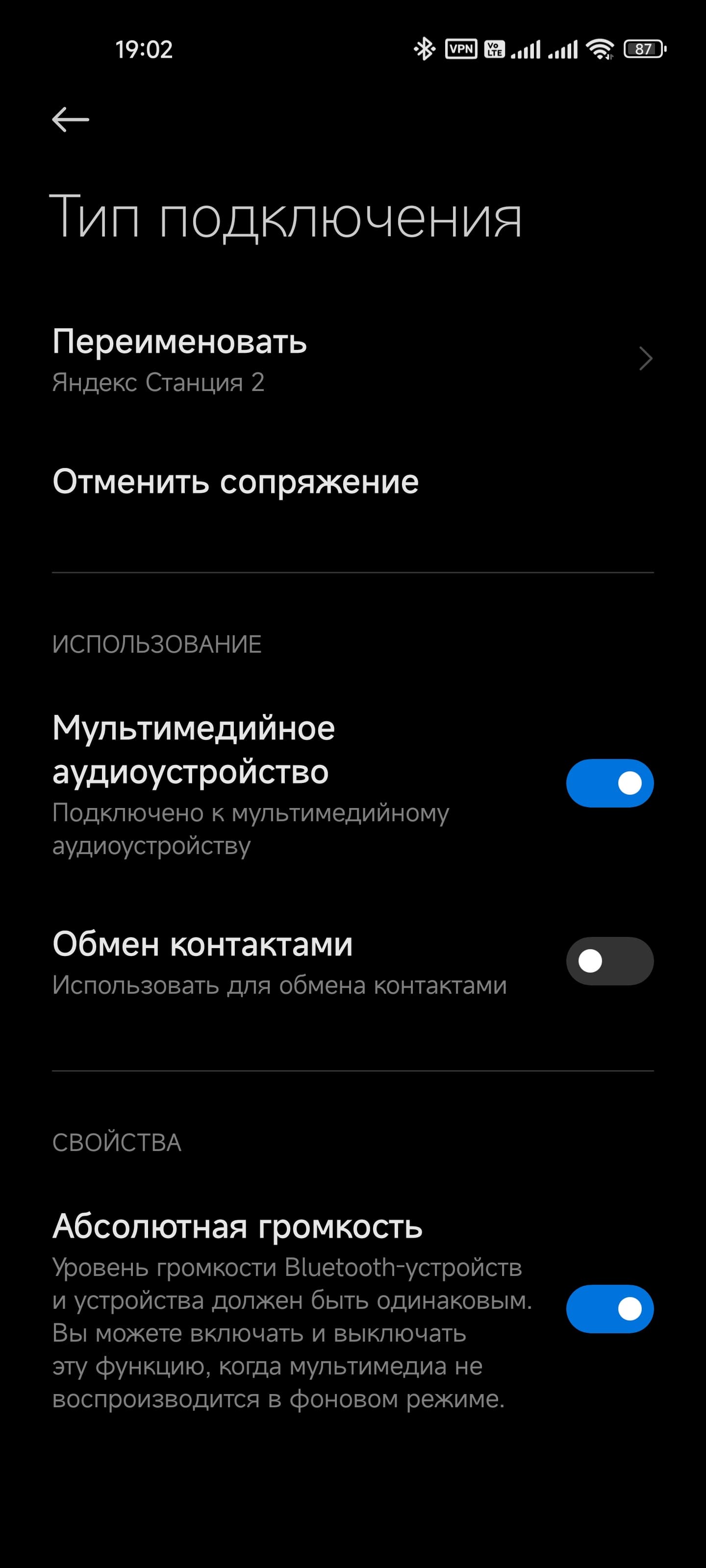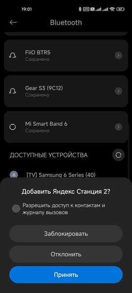 Осталось настроить ее, но это чуть позже. Сначала протестируем еще один вариант подключения. Говорим: «Алиса, включи Bluetooth» и пробуем соединиться со смартфоном. Все получается без проблем. Приятно, что колонка при этом полностью сохраняет работоспособность: Алиса отвечает на вопросы, управление «умным» домом остается доступным и так далее. Кодек только один — базовый SBC, тут без перемен. Возможно, хотелось бы чего-то более «продвинутого», но в целом и его достаточно — все же речь идет о сравнительно компактной акустике.