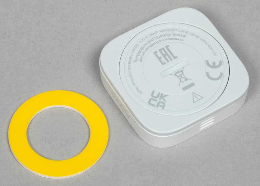 Датчик климата совсем миниатюрный — 36×36×9 мм. На одной из боковой поверхностей корпуса есть прорези, за которыми скрываются непосредственно датчики.