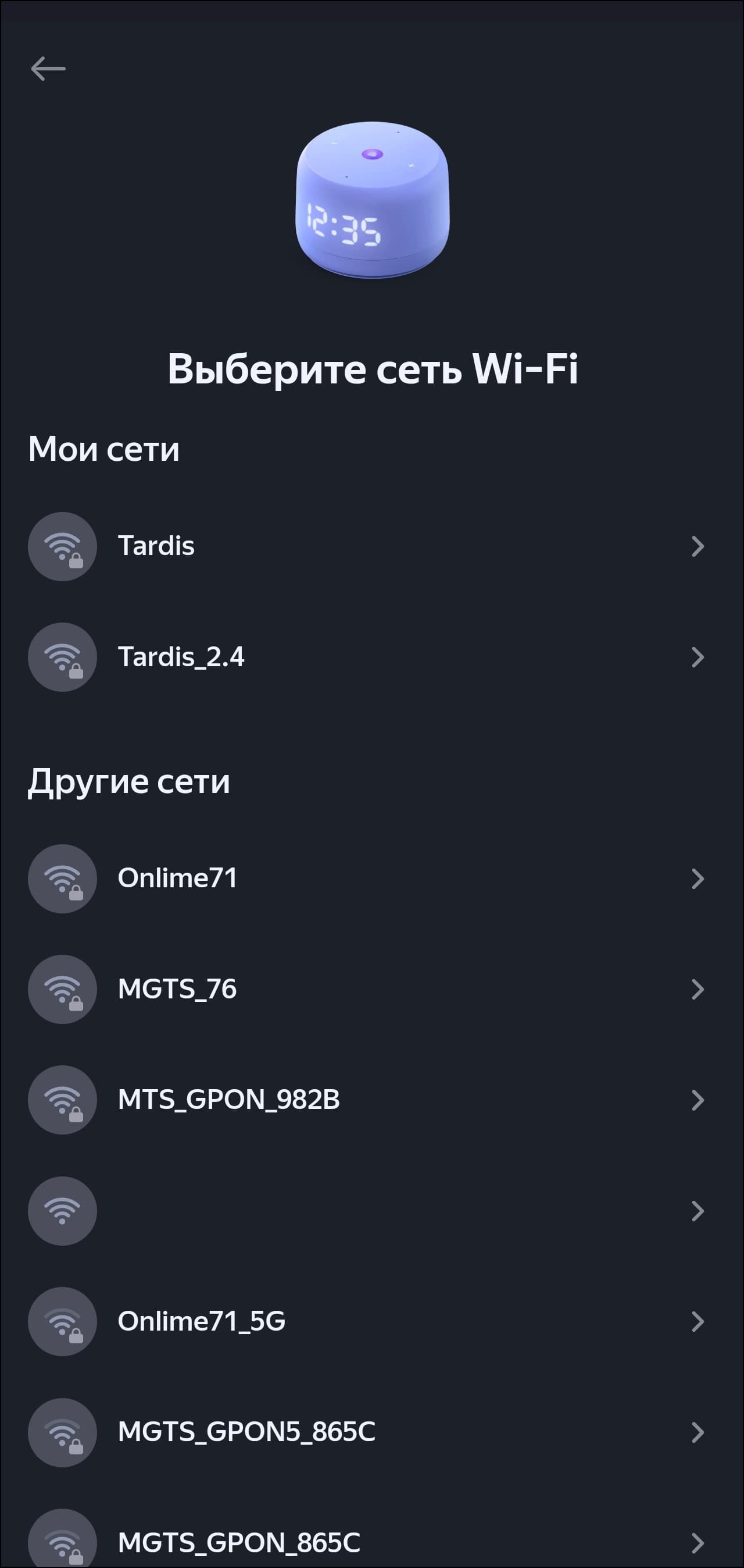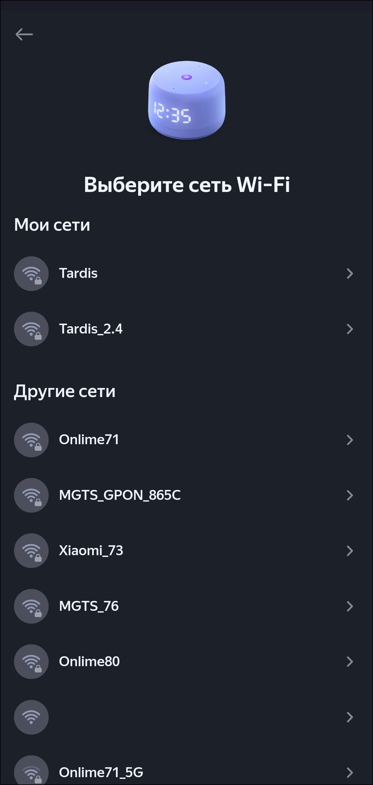 При этом разработчики постарались максимально облегчить перенос «Яндекс Станции Лайт 2» из одного пункта в другой, а значит — и смену Wi-Fi-сетей. Оказавшись в месте с незнакомой сетью, достаточно зажать кнопку Mute сбоку колонки на 6 секунд и дождаться, пока центральный индикатор не начнет мигать белым, а Алиса не предложит подключиться к интернету (также процесс можно запустить из приложения). Далее просто добавляем еще одну сеть.
