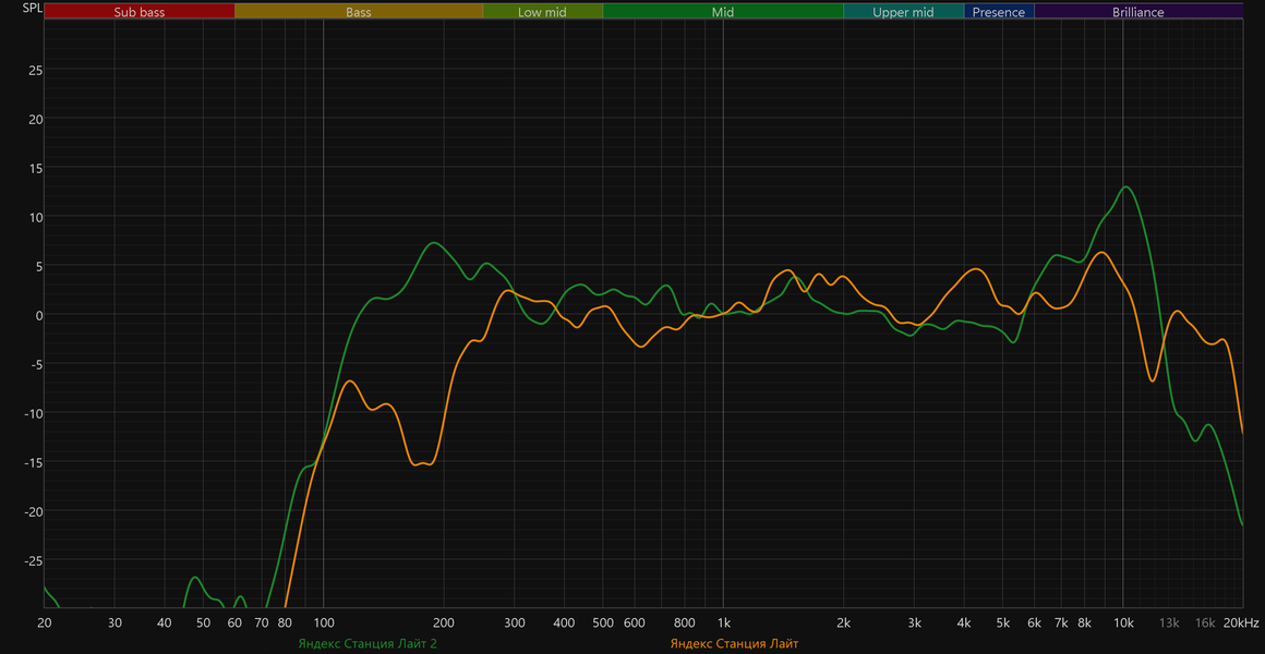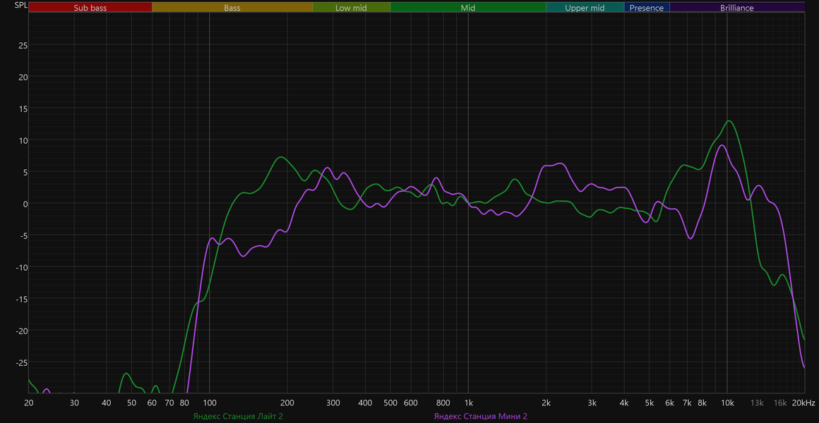 То же самое отличает новинку и от двух версий «Яндекс Станции Мини». И если вторая звучит более-менее сравнимо, то первая проигрывает практически во всем — от выраженности баса и ВЧ-диапазона до равномерности подачи середины.