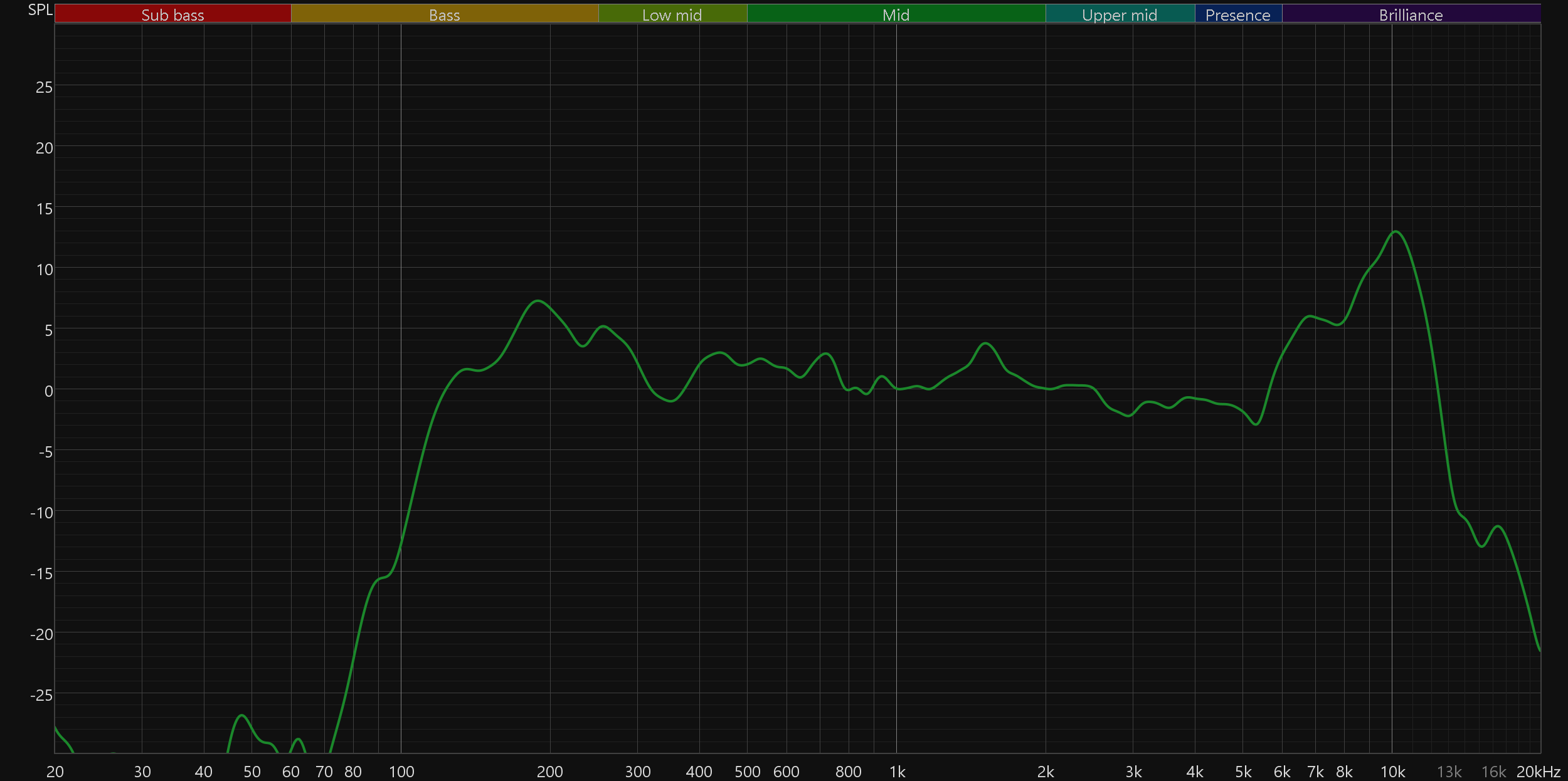 Далее графики усредняются, давая нам общую картину. Звучит «Яндекс Станция Лайт 2» очень и очень неплохо для компактной пластиковой колонки. Воспроизведение НЧ-диапазона стартует уже примерно от 150 Гц, средние частоты подаются довольно равномерно, а вот зачем нужен акцент на ВЧ-регистре — не очень понятно. Чисто теоретически это может повысить субъективно воспринимаемое «качество» воспроизведения музыки, но по факту нередко приводит к слегка неестественному звучанию и появлению так называемого «песка». Однако проблема если и есть, то воспринимается не очень остро — субъективно колонка звучит вполне приемлемо.