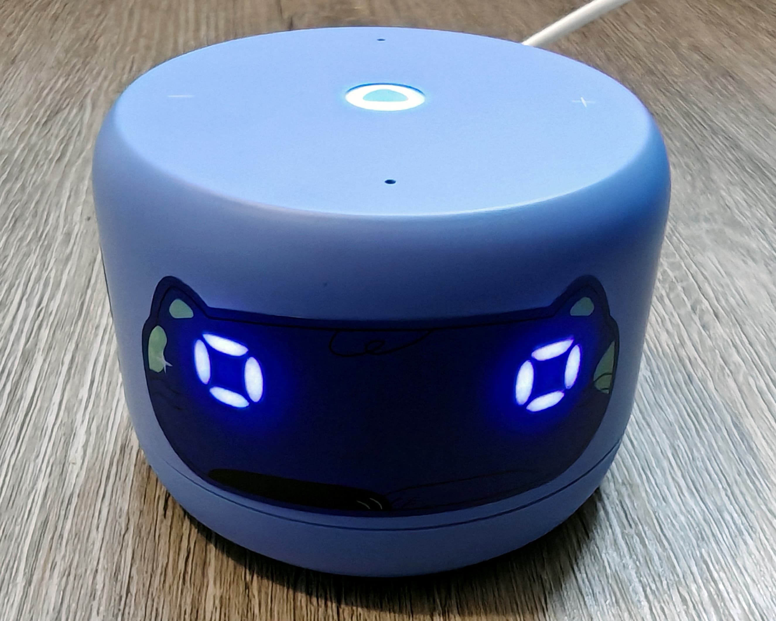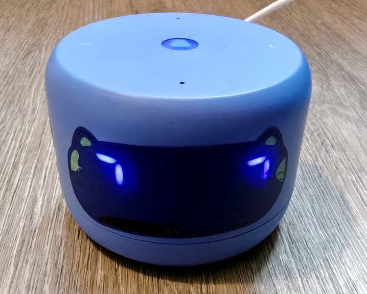 При этом у «Станции Лайт 2» эта идея реализована чуть поинтереснее — помимо просто наклеек есть два длинных стикера-маски, которые можно наклеить поверх LED-экрана. Один превращает колонку в котика, другой — в робота. Анимированные глаза очень забавно смотрятся на персонажах, детям явно понравится.