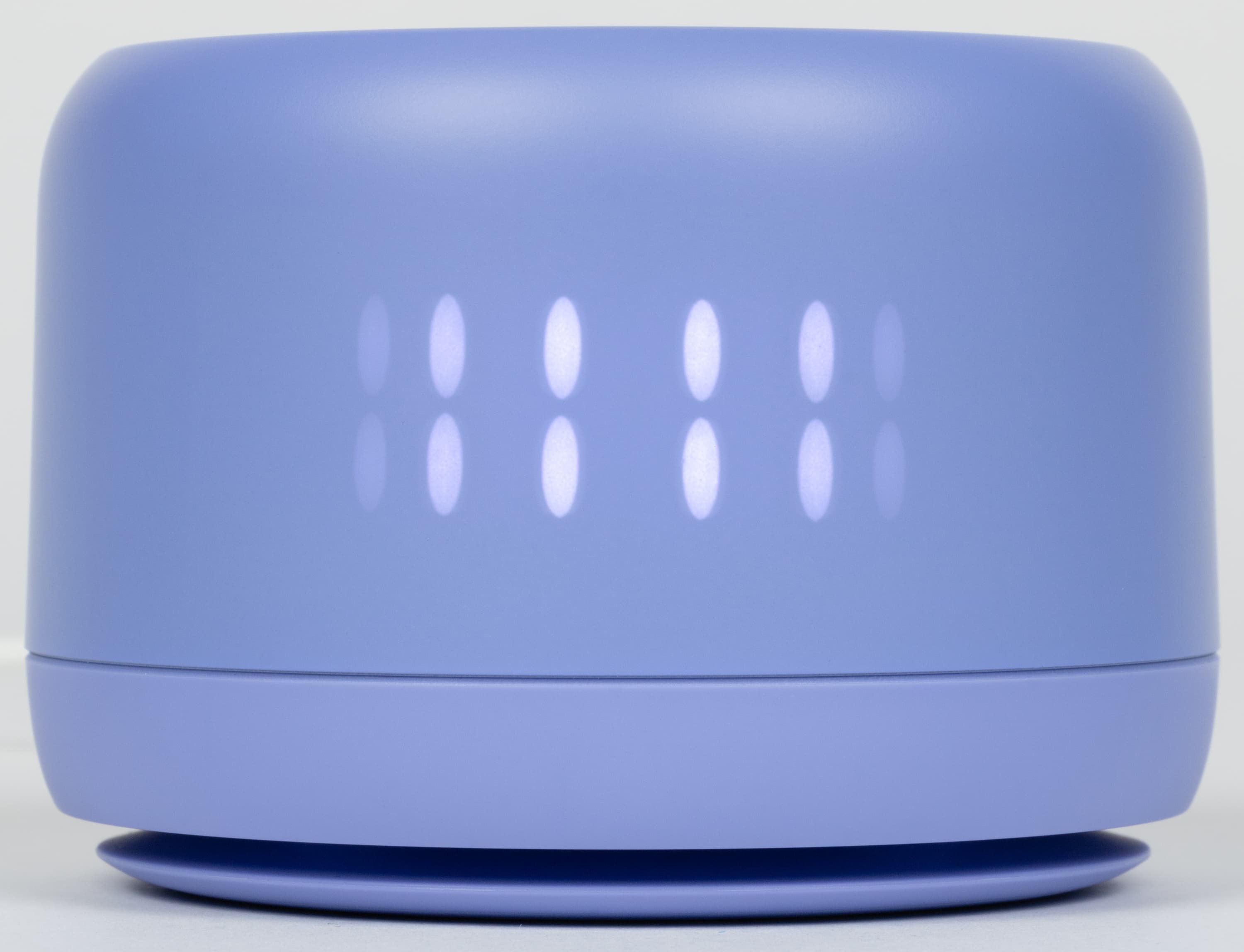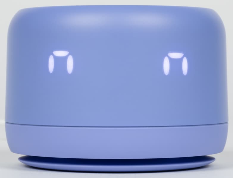 На старте продаж Станция Лайт 2 доступна в трех ярких цветах: фиолетовом, голубом и розовом, позднее к ним добавятся оранжевый, зеленый и темно-серый. У нас на тестировании была фиолетовая версия. Как уже упоминалось во введении, по задумке разработчиков, дизайн колонки максимально соответствует запросам детской аудитории — она легкая и небольшая, поместится даже в маленькой руке ребенка. Внешнее сторона корпуса имеет приятное soft-touch покрытие, но при этом не склонна к появлению пятен от прикосновений и легко очищается от загрязнений.