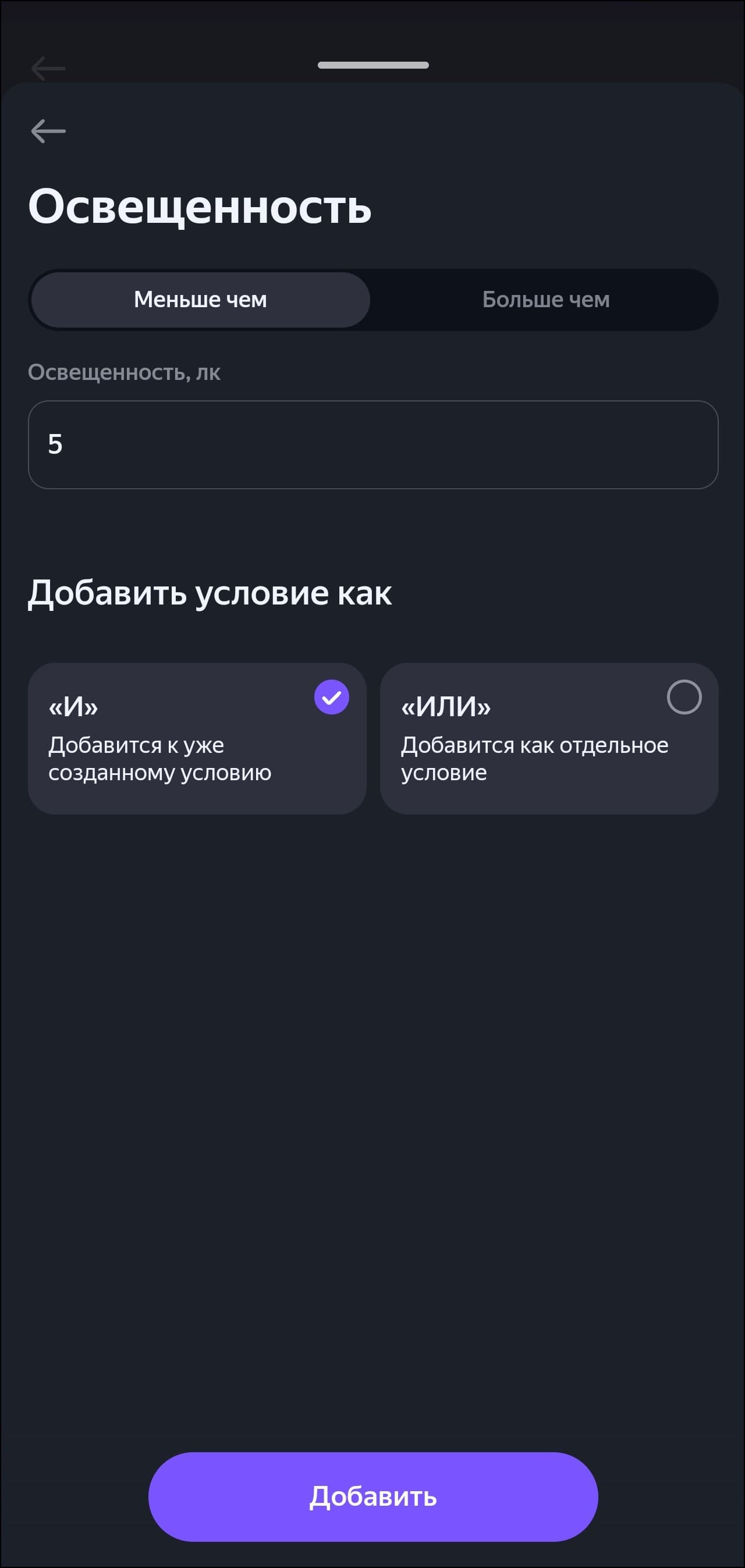 Что же касается «умного дома», тот тут тоже есть очень хорошая новость. Годами мы ждали от «Яндекса» двух вещей. Во-первых — мультикоманд, то есть возможности сказать Алисе: «Выключи свет и включи телевизор» без необходимости отдельно обращаться к ней для выполнения каждого из действий. Пока не дождались, продолжаем наблюдение. А во-вторых, логики «и/или» в сценариях — возможности добавлять более одного условия для выполнения действий. И вот она, наконец, появилась. Вкратце расскажем, почему это важно.
