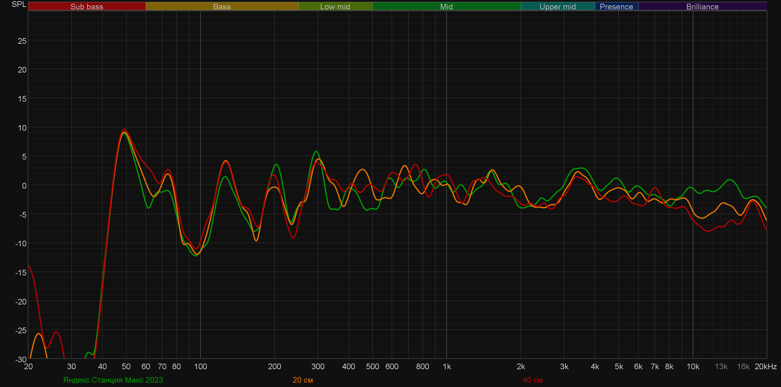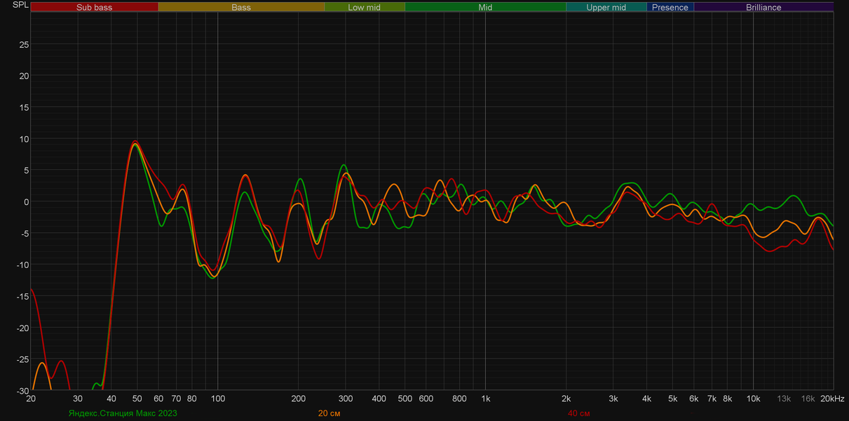 Подъем измерительного микрофона выше колонки показал, что ее без опасений можно размещать и на уровне пояса пользователя — больших изменений в звучании он не заметит.