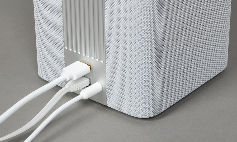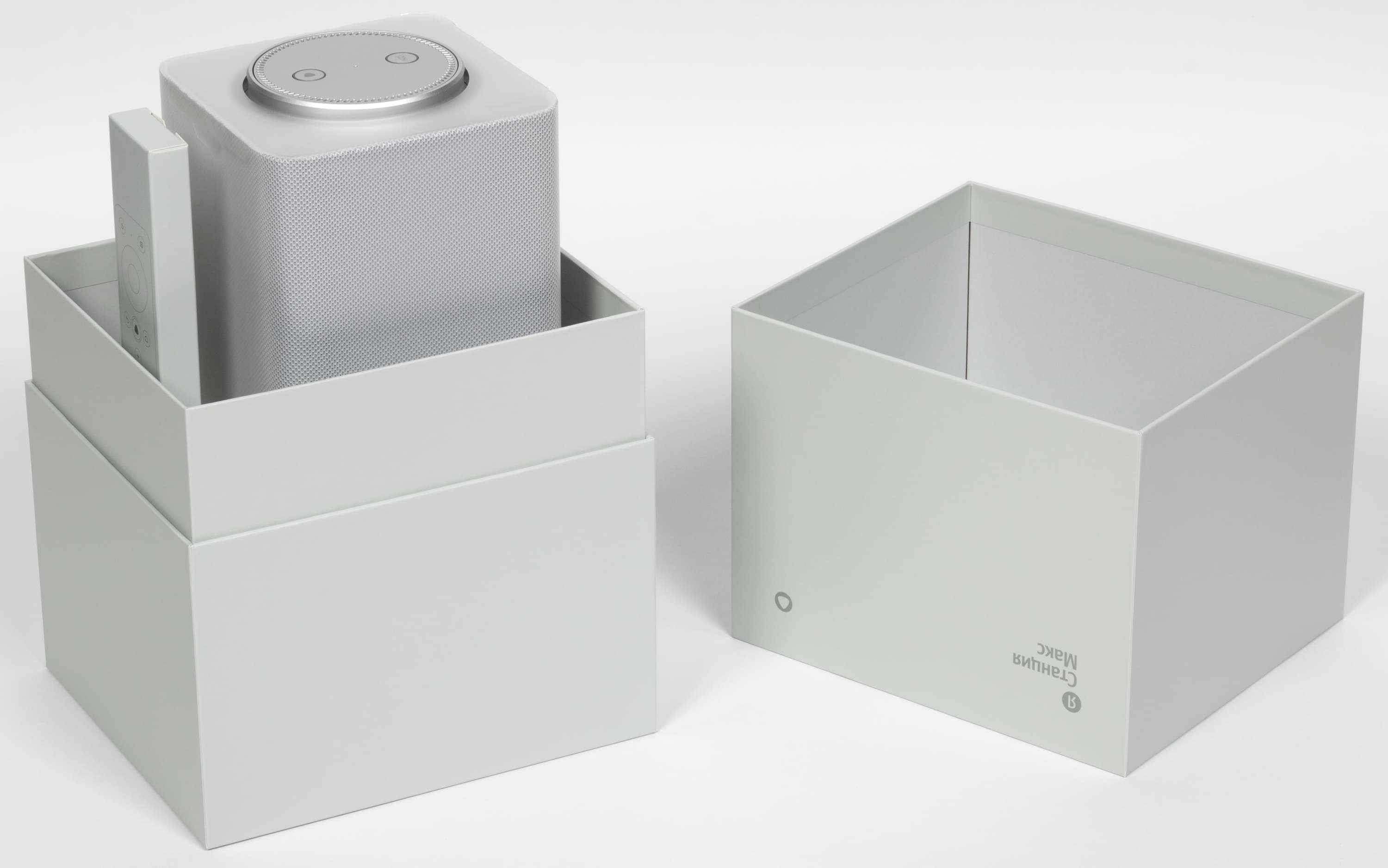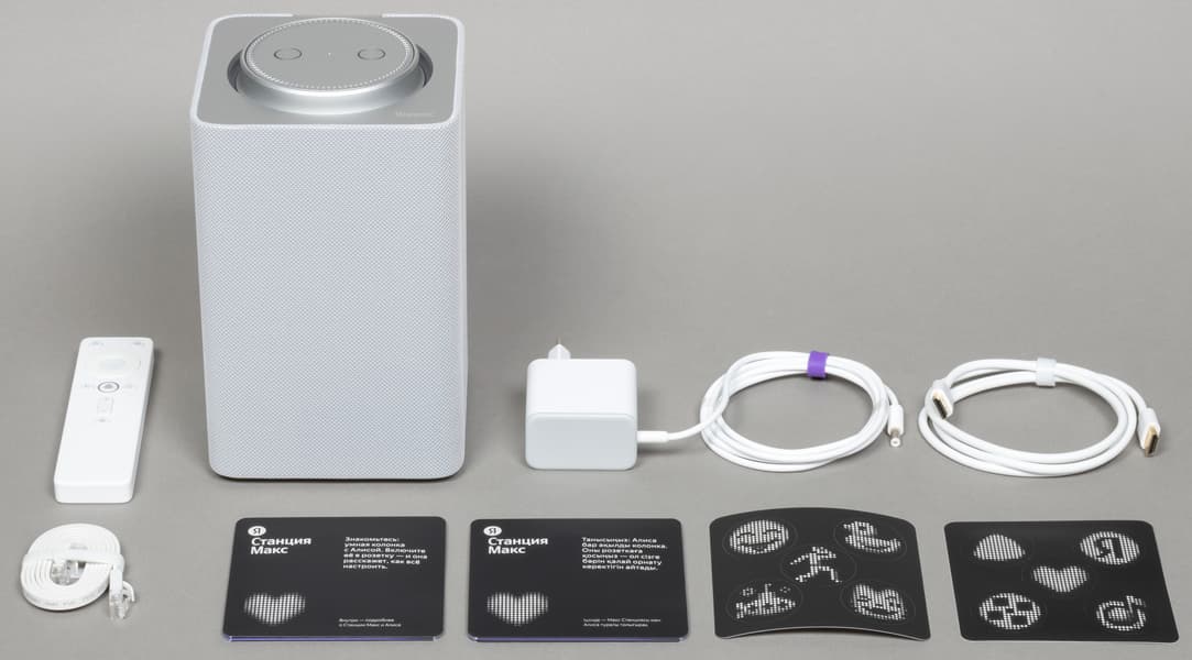 В комплект поставки входят сама колонка, блок питания для нее, инструкция, несколько фирменных наклеек, пульт дистанционного управления, а также два кабеля: HDMI и Ethernet.