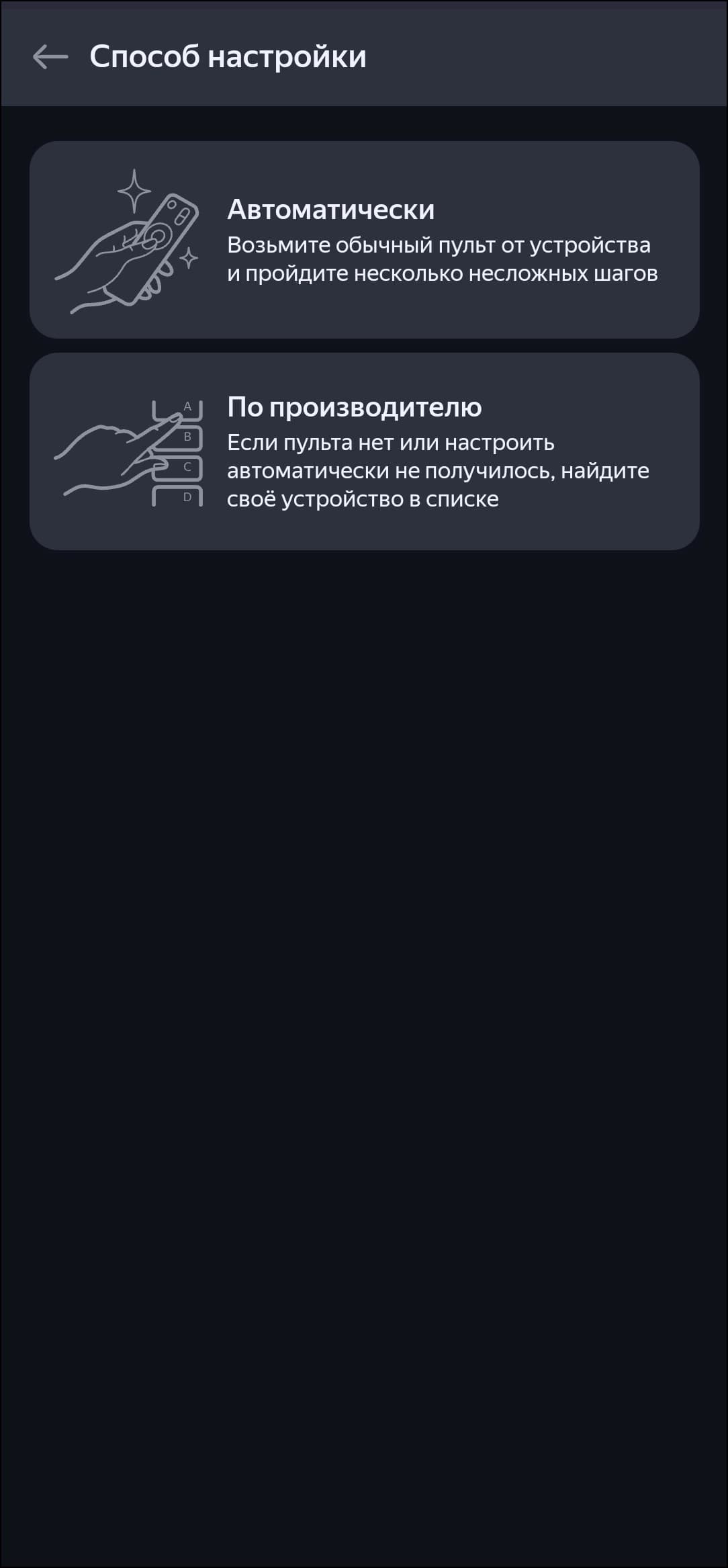 «Яндекс.Хаб» также оснащен инфракрасным приемником и передатчиком, благодаря чему может управлять устройствами с ИК-пультом, что существенно расширяет его возможности. Вариантов настройки два — через поиск в базе готовых предустановок или путем «обучения». Мы точно знаем, что ИК-пульты с приложением работают, но на этот раз довести процесс настройки до конца у нас не получилось, несмотря на несколько попыток и разные задействованные устройства. Вероятнее всего, это связано с тем, что «Яндекс.Хаб» тестировался за несколько дней до официального выхода, к моменту старта продаж всё наверняка заработает как надо.