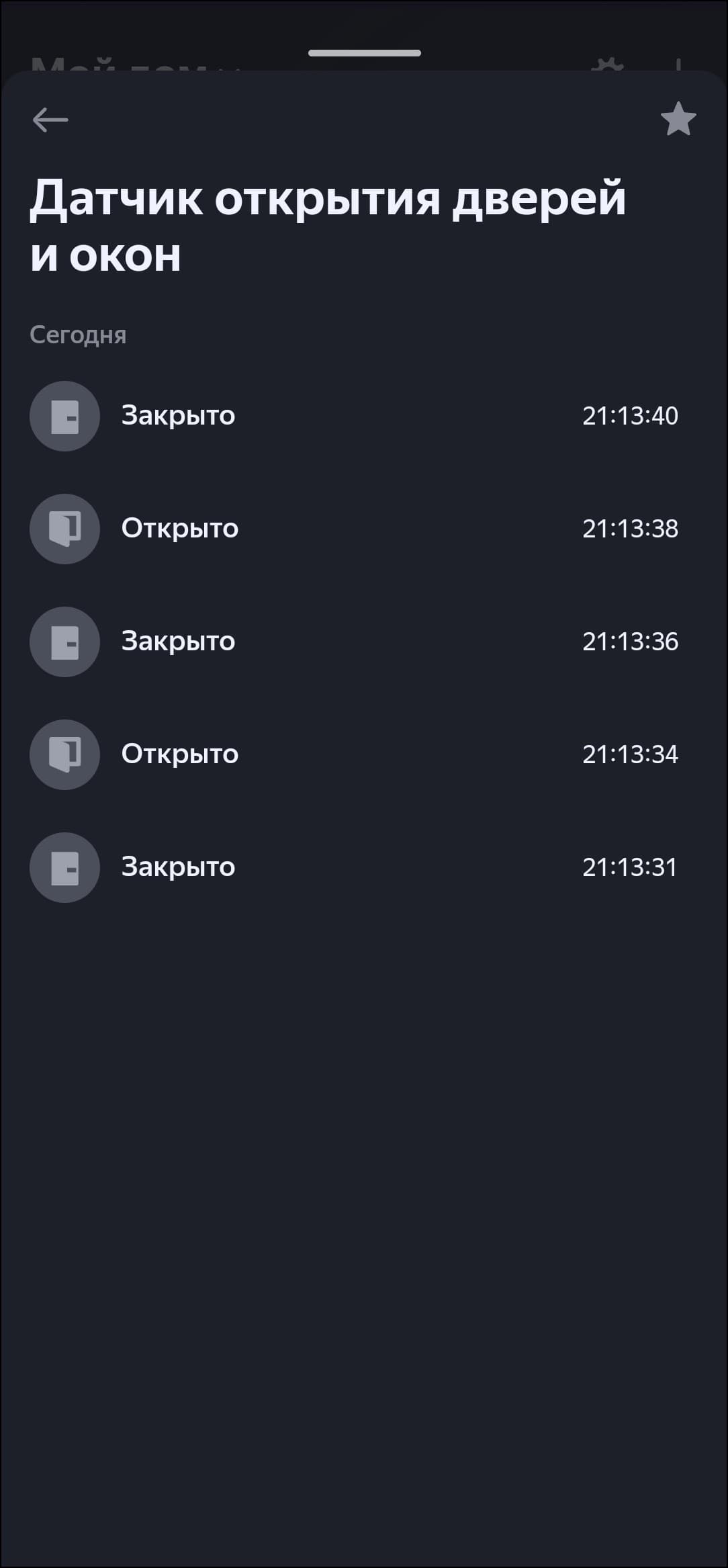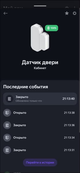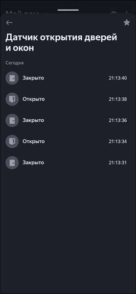 И снова по умолчанию датчик просто дает нам список закрытий и открытий с указанным временем — нужно настроить сценарий с оповещением.