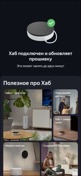 Мы выбрали беспроводную, ввели логин и пароль — готово. Несколько минут хаб обновляется, после чего готов к работе. Настроек минимум — можно лишь дать ему более удобное и понятное имя, но в нашем случае это совершенно не обязательно. О готовности к подключению, добавлении нового устройства и прочих событиях своей жизни Хаб сообщает звуковыми сигналами встроенного динамика — громкими, но не раздражающими.