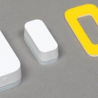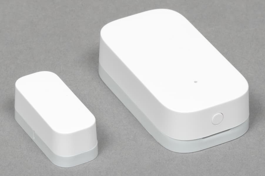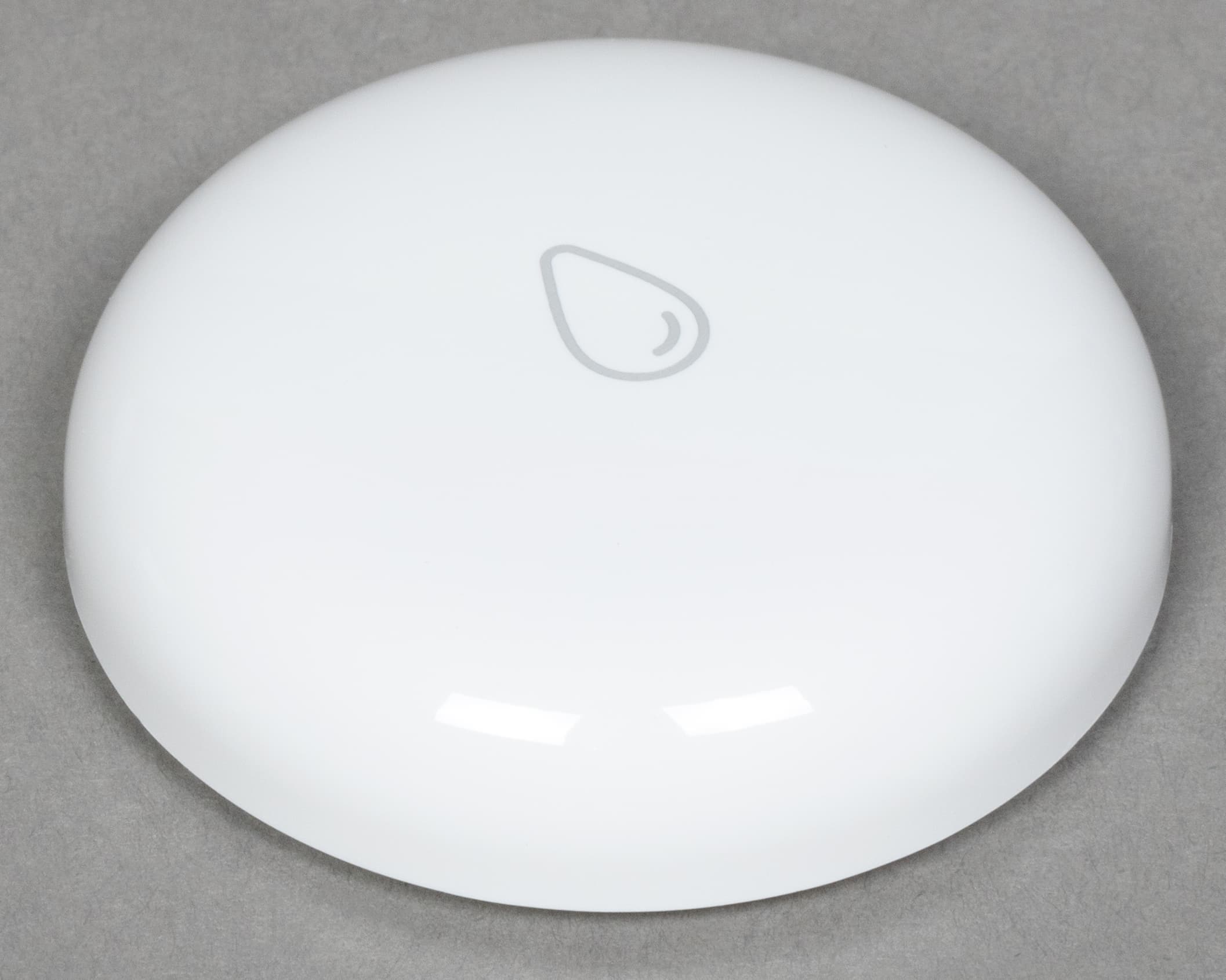 Датчиков протечки и открытия дверей мы в прошлый раз не видели, потому про них скажем пару слов отдельно. Выглядят они крайне лаконично, как и все прочие рассматриваемые устройства. Датчик протечки выполнен из глянцевого пластика, на котором легко появляются отпечатки пальцев. Но размещается он обычно в местах, где это вряд ли будет проблемой.