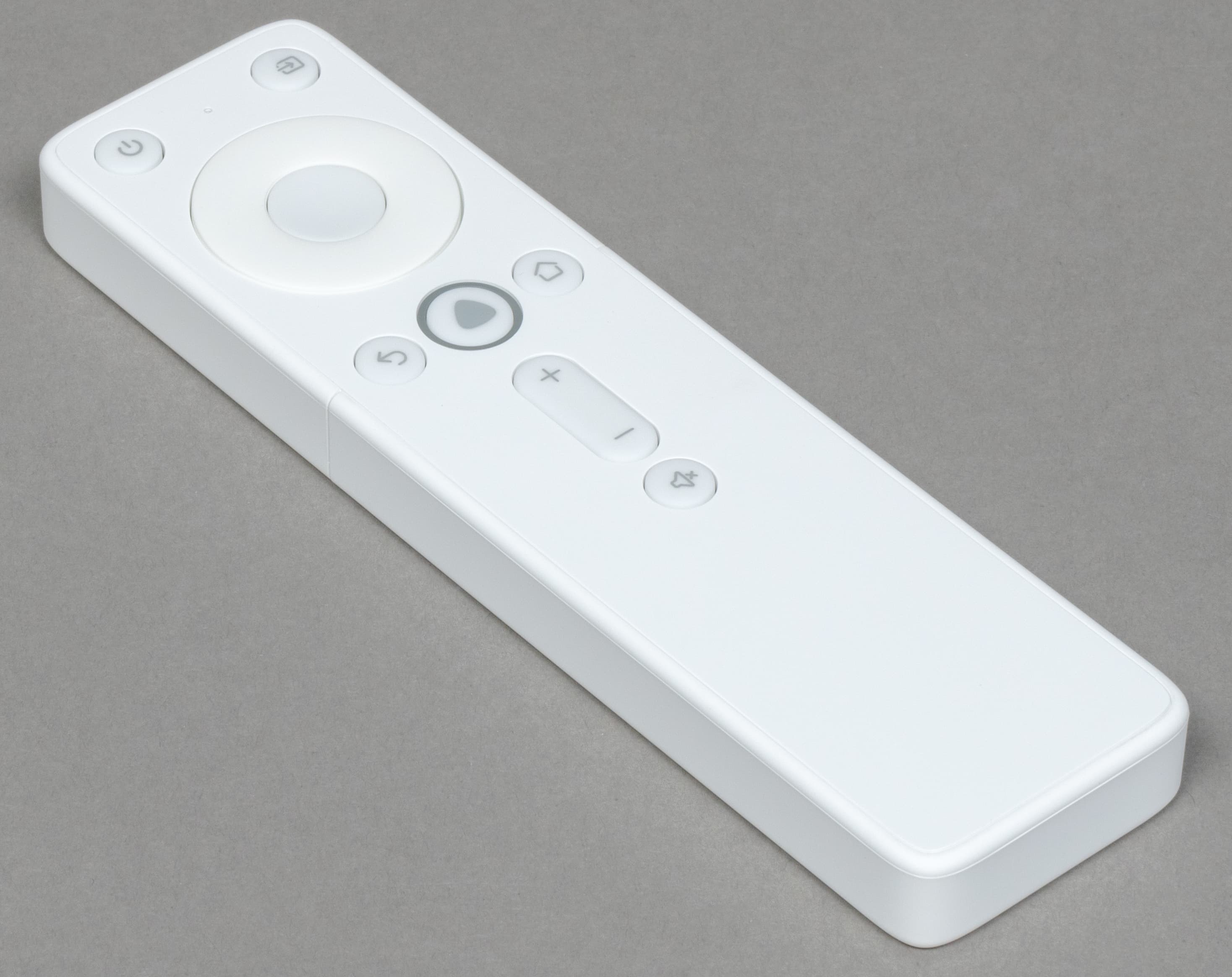 Ну и, конечно, пульт. Он может управлять плеером, активировать помощника, изменять громкость... Реализовано и управление подключенным телевизором — с помощью клавиш сверху можно выключать его и выбирать активный вход. Происходит это, по всей видимости, посредством протокола HDMI CEC, который должен поддерживаться телевизором и тем входом HDMI, к которому подключена «Станция». При этом поддерживаться должна не только отправка сигналов с универсального пульта телевизора, но и прием этих самых сигналов от других устройств. В общем, управлять можно, но есть нюансы. С самой «Станцией» пульт, естественно, взаимодействует без проблем. При этом используется не ИК-сигнал, а радиоканал, так что пульт даже не нужно направлять в сторону устройства.