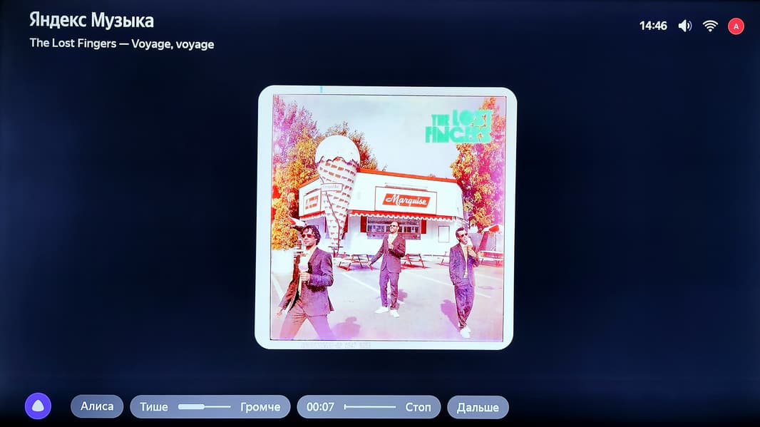 При воспроизведении музыки на экране появляется обложка, название группы и композиции — всё как положено. Правда, неплохо бы видеть еще название альбома и год выпуска, но не будем придираться.