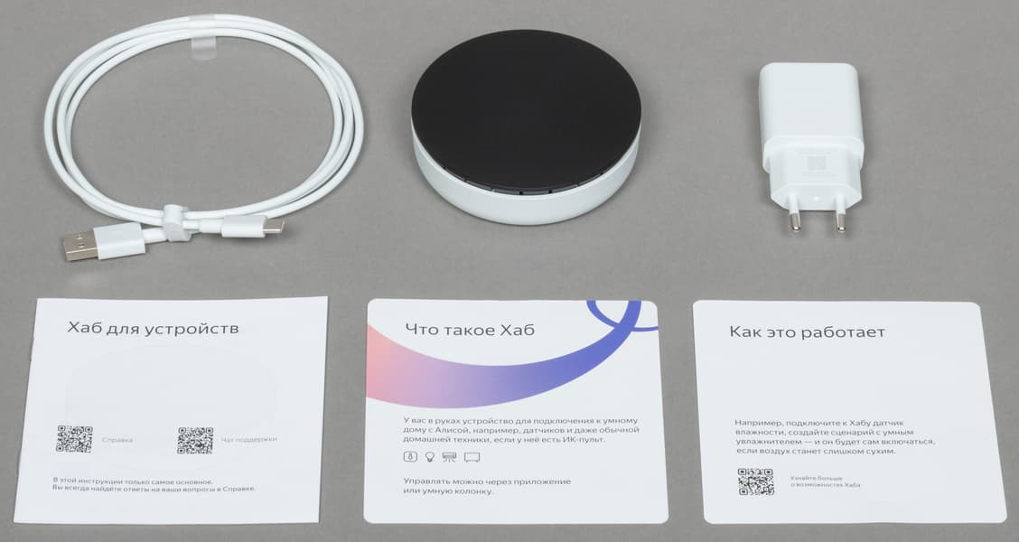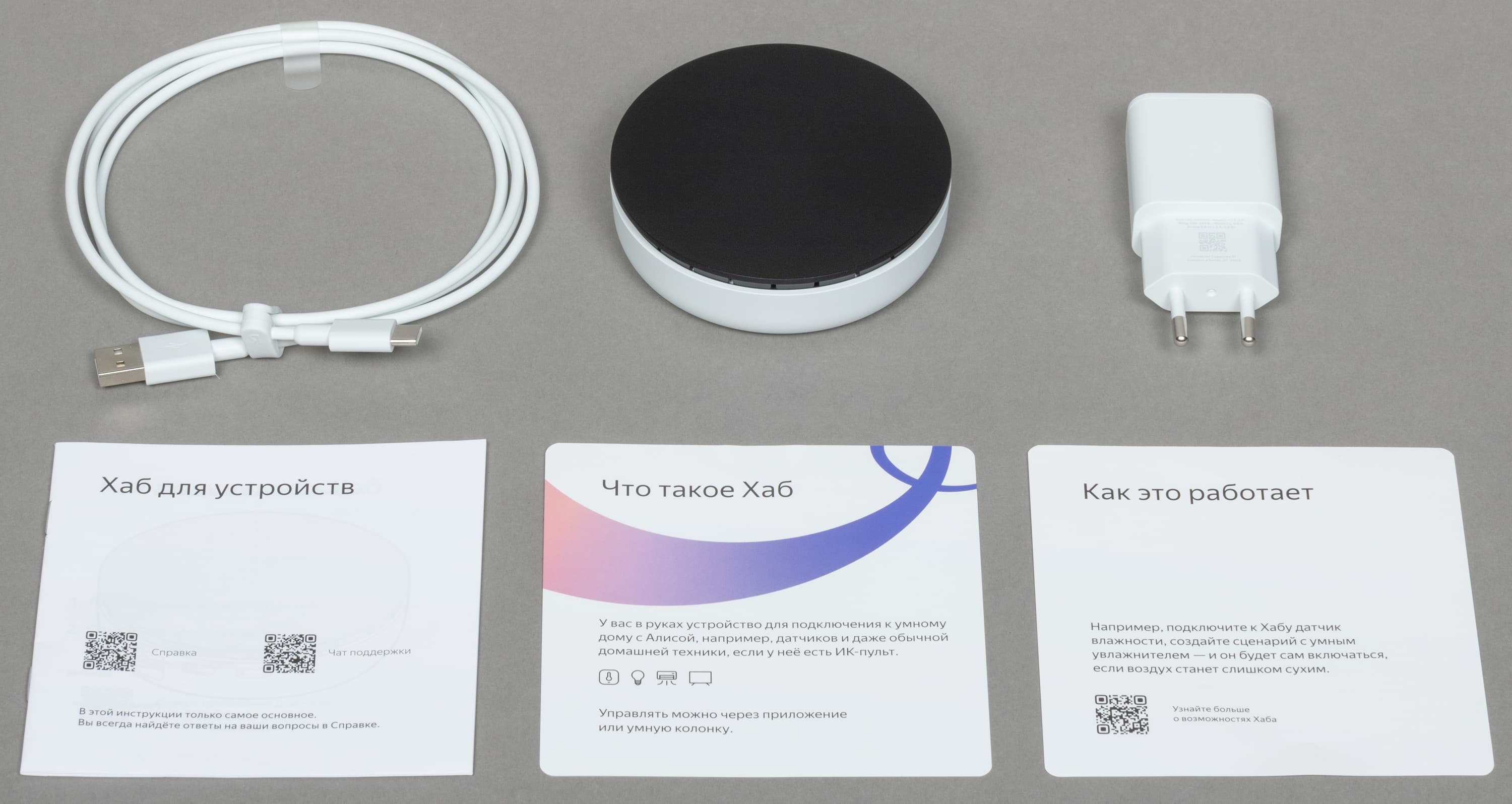 В комплект поставки входят устройство, кабель USB-A — USB-C длиной 1,5 метра, блок питания и документация.