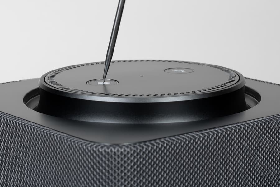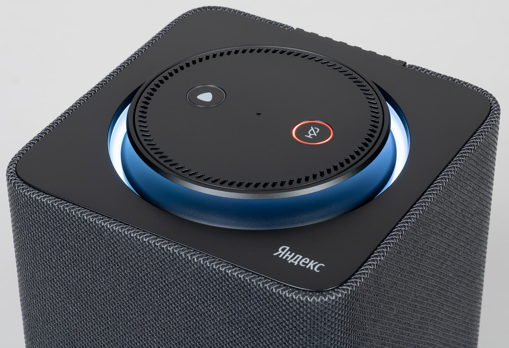 На верхней поверхности регулятора находятся две кнопки: одна отвечает за активацию голосового помощника, другая — за отключение микрофона. О том, что микрофон неактивен, сигнализирует красная подсветка вокруг клавиши.
