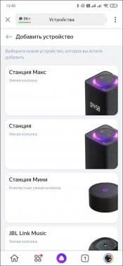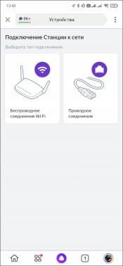 Процесс подключения «умных» колонок с Алисой мы рассматривали неоднократно, потому сегодня обойдемся без деталей — покажем его в общих чертах. Заходим в универсальное приложение от «Яндекса» , переходим в раздел «Устройств»а, жмем на кнопку добавления. Выбираем раздел с колонками — флагман, естественно, стоит первым в списке. Интересная особенность именно этой модели — возможность выбирать между проводным и беспроводным подключением к сети.