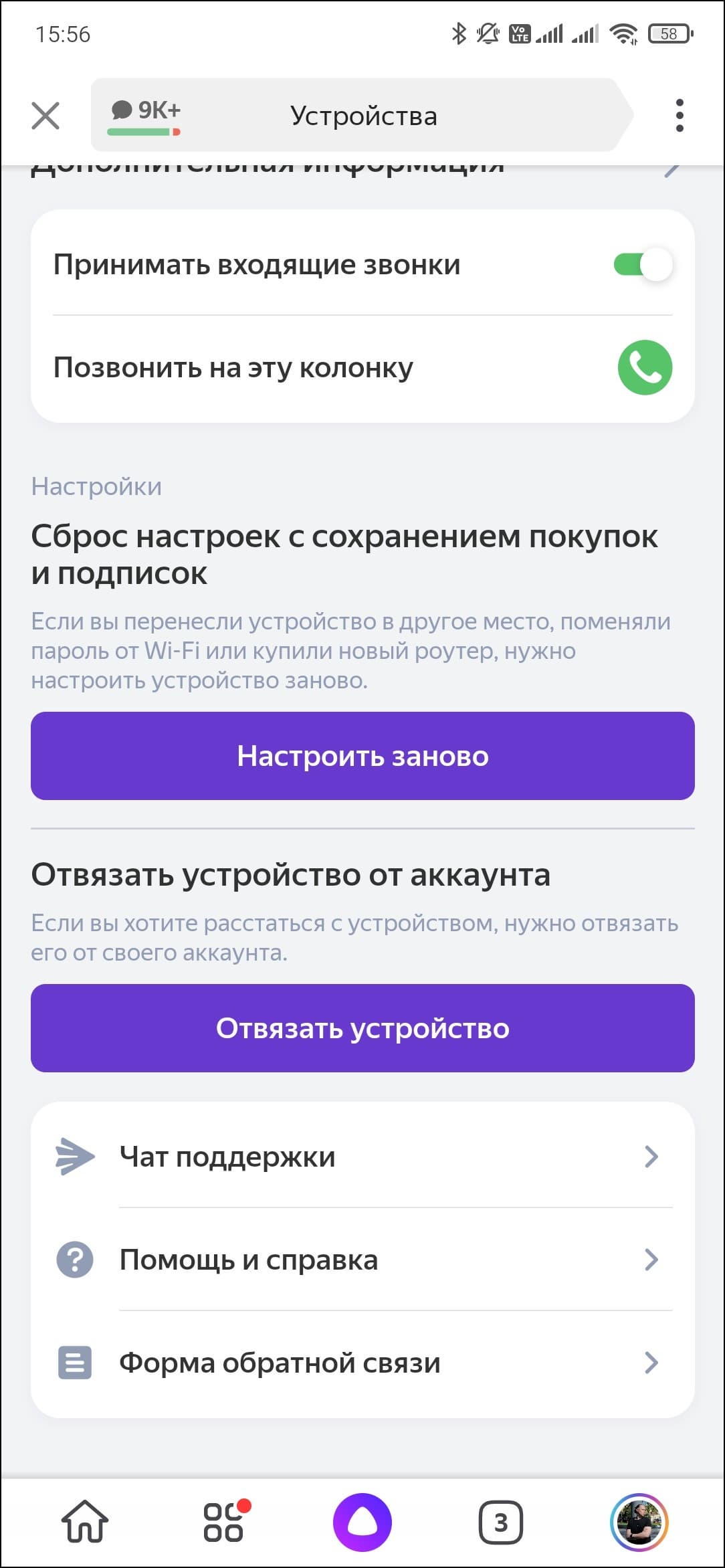 Занимает этот процесс меньше минуты. Далее колонка предлагает включить возможность принимать звонки — дело полезное, включаем.