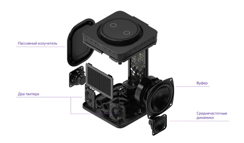 Мощность всей акустики при этом выросла с 50 Вт до 65 Вт, причем сумма мощностей всех элементов приближается к 90 Вт, но разработчики сознательно ограничили этот параметр. Мол, лучше использовать более мощные компоненты в комфортных условиях… Логика в этом точно есть, да и громкости новой «Станции» вполне хватает. Обновились и встроенные усилители — как и в прошлом устройстве они от Texas Instruments, но в «Станции Макс» используется более свежая и мощная модель TAS5825M.
