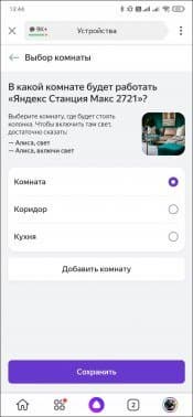 После этого нам предстоит небольшое знакомство с возможностями Алисы, а также последняя из обязательных настроек — выбор комнаты, в которой будет находиться устройство.