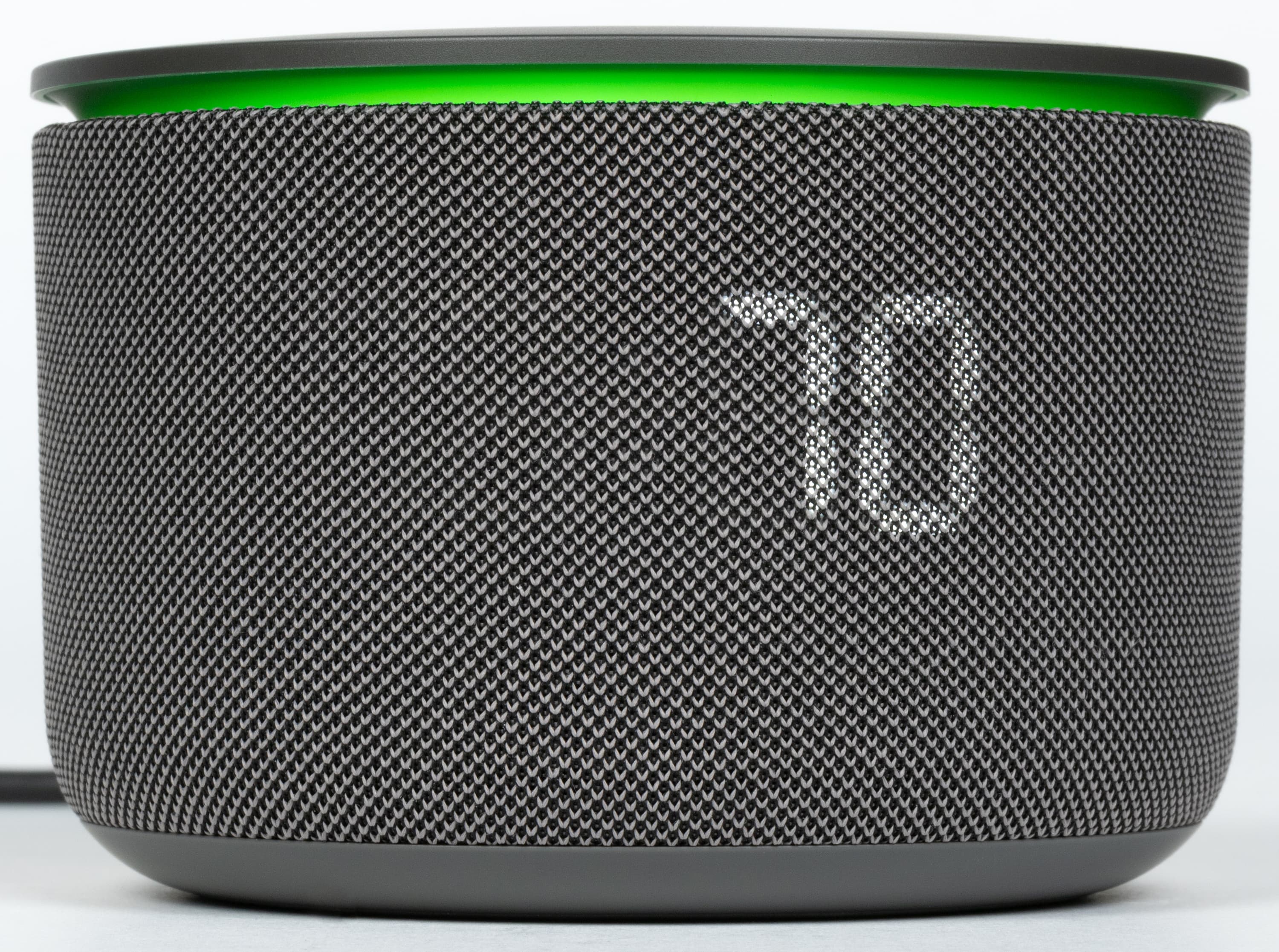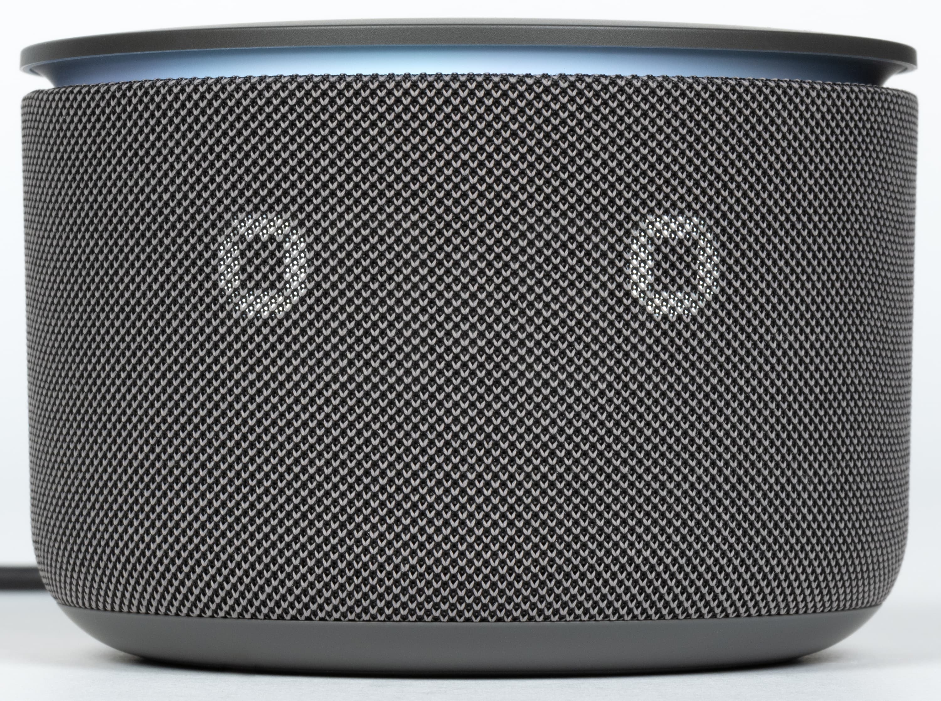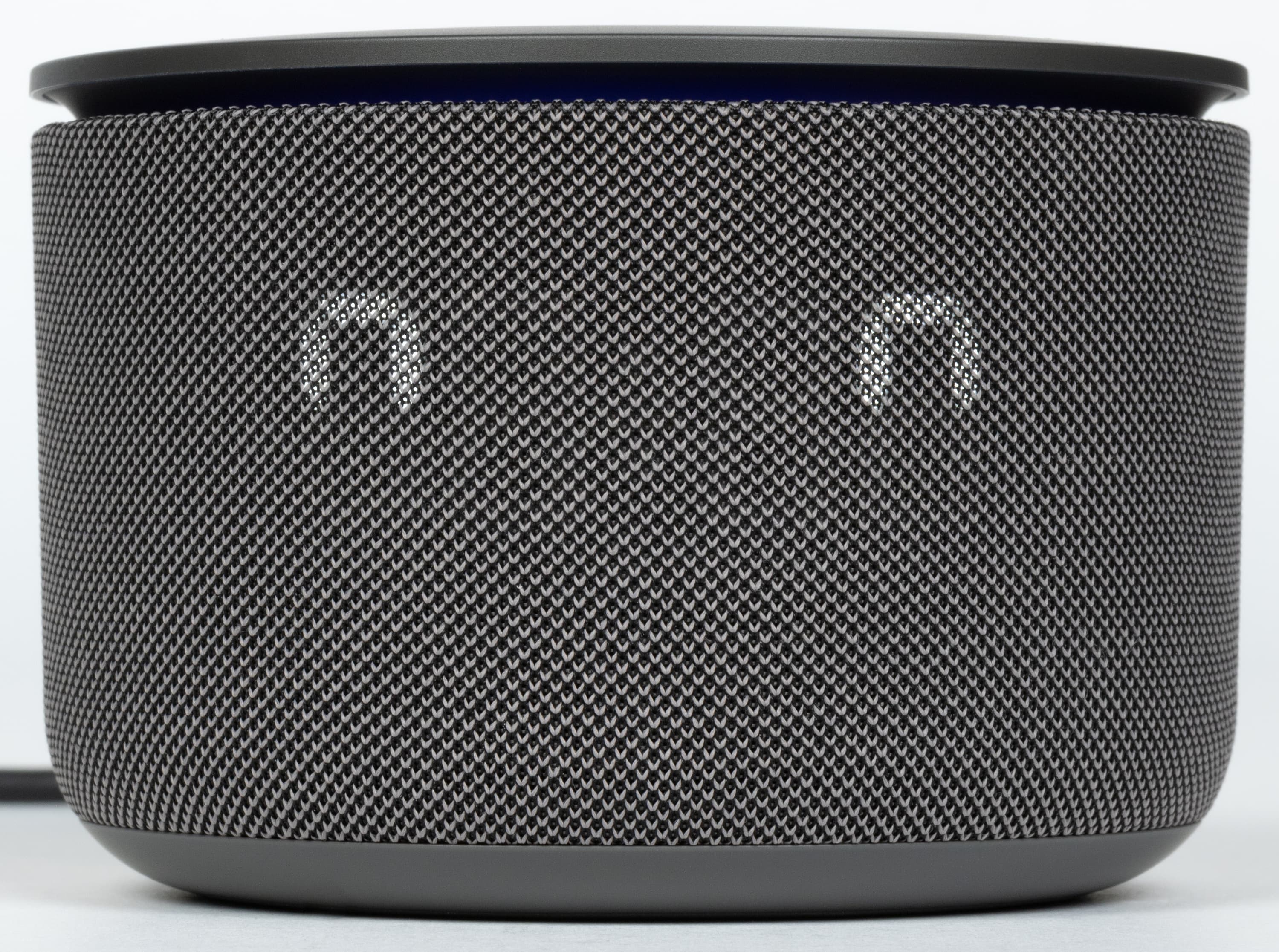 Центральная клавиша в виде значка Алисы подсвечивается, информируя о срабатывании кнопки, выключении микрофона и других событиях. Под сенсорной панелью расположена кольцевая анимированная LED-подсветка, хорошо заметная сбоку. Она не только добавляет эффектности внешнему виду колонки, но и выполняет информационную функцию: сопровождает общение с голосовым ассистентом, свайпы по панели и входящие звонки, а также синхронизируется с музыкой или отображаемыми данными — например, погодой. Яркость кольца и LED-дисплея регулируется автоматически — за это отвечает встроенный датчик освещенности.