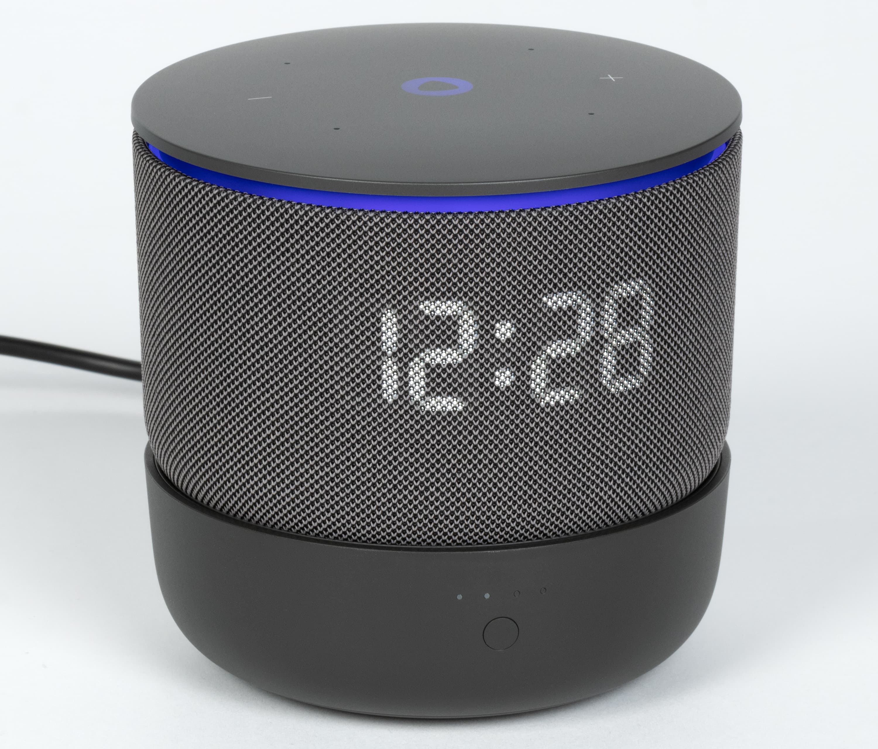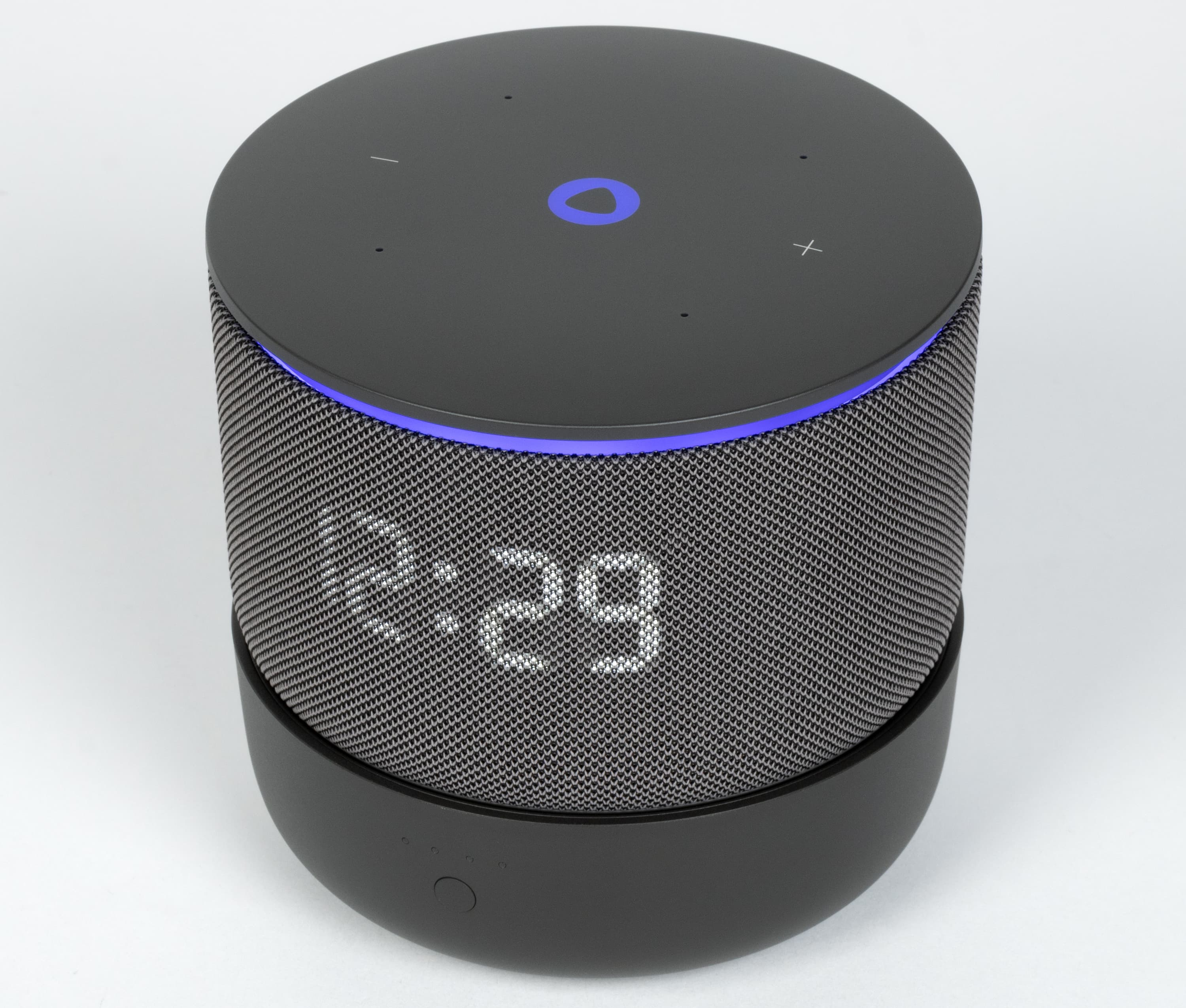 Верхняя панель сделана чуть выпуклой, благодаря этому управлять колонкой с помощью касаний и свайпов стало немного удобнее. А теперь взглянем на аккумулятор, который можно прикрепить к «Яндекс Станции Мини 3 Про». Он выдержан в том же стиле, что и сама колонка: строгий, лаконичный, без лишнего декора.