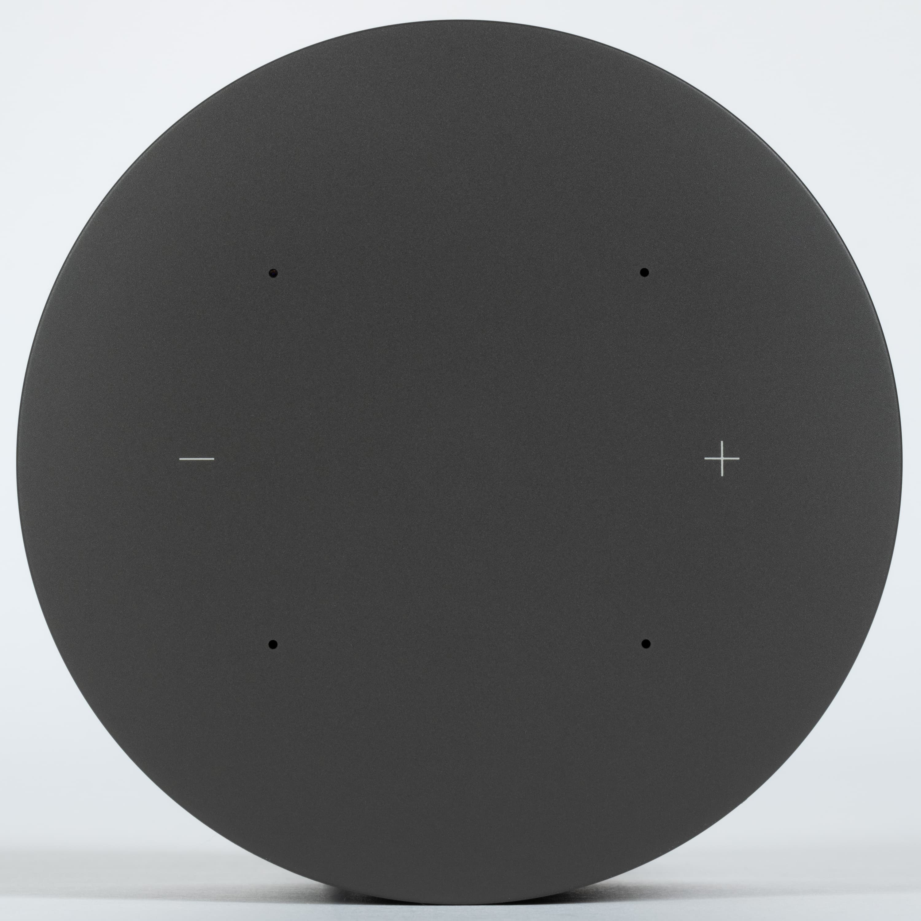 На верхней панели «Станции Мини 3 Про» расположены три сенсорные клавиши: регулировка громкости по краям и значок Алисы в центре. Короткое нажатие на кнопки «плюс» и «минус» меняет громкость на один пункт, при удержании уровень звука плавно увеличивается или уменьшается. Центральная кнопка запускает или останавливает воспроизведение, а при долгом нажатии активирует голосового ассистента.
