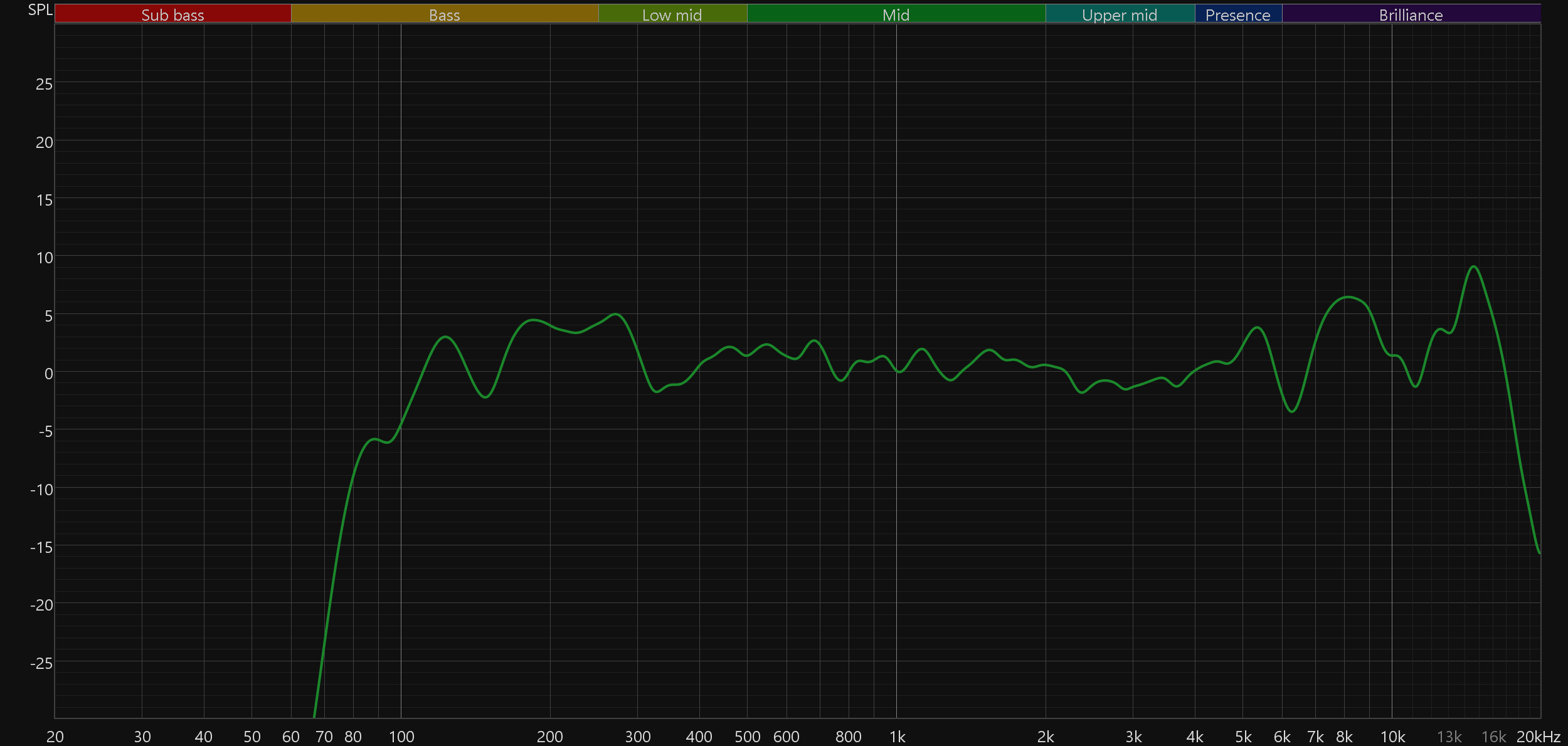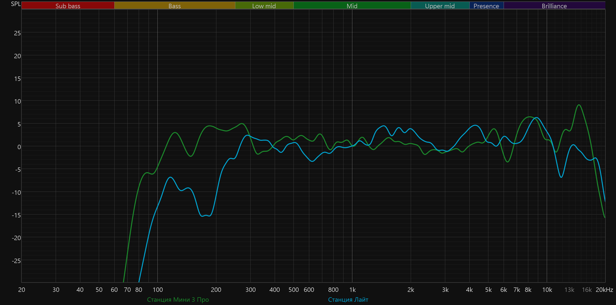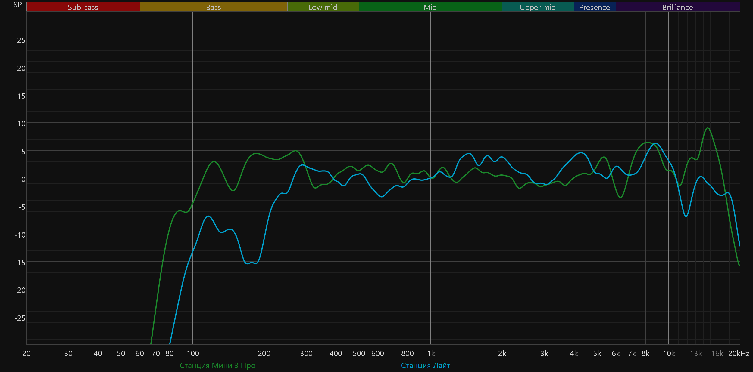 При этом позитивные изменения по сравнению с базовой моделью и слышны, и видны на графиках. Бас стал чуть более выражен, а главное — не стало провала в районе 6 кГц, который негативно сказывался сразу на многом: от звучания перкуссий и малого барабана до разборчивости вокала.