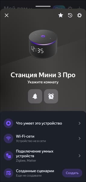 Сразу после подключения «Станция Мини 3 Про» становится полноправным участником умного дома и позволяет управлять всеми ранее настроенными устройствами с помощью голосового ассистента. Список функций и возможностей здесь практически такой же, как у базовой версии. Но есть и важное отличие — встроенный Zigbee-модуль.