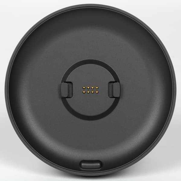 По центру нижней панели расположены коннектор и крепление для съемных модулей. Вокруг углубления предусмотрена силиконовая накладка, которая обеспечивает устойчивое положение колонки на горизонтальной поверхности. На нее нанесены логотип, значки сертификации и краткая информация об устройстве.