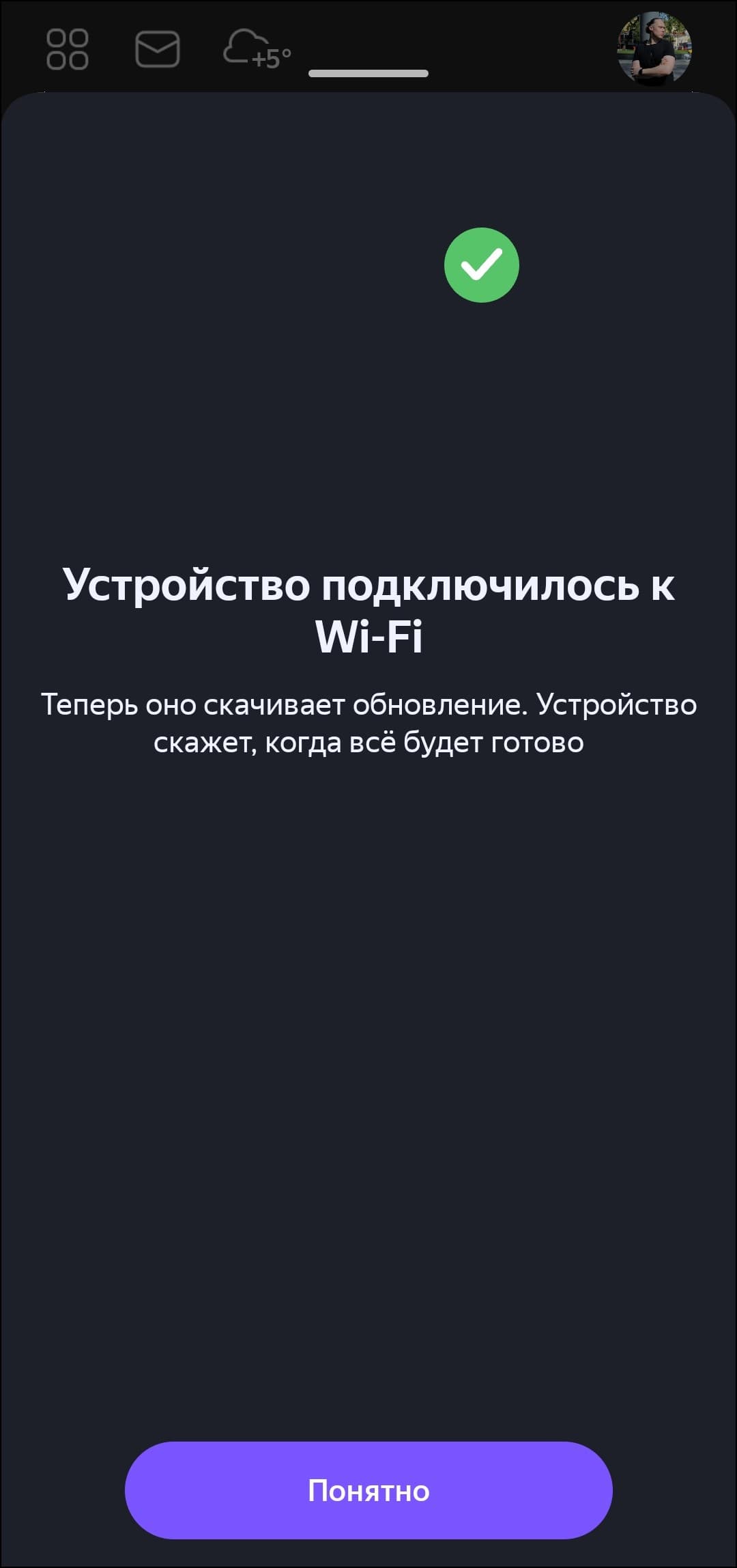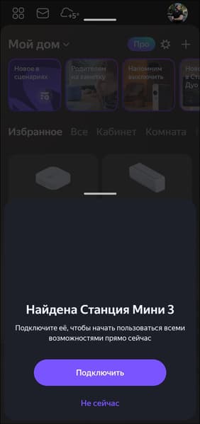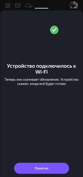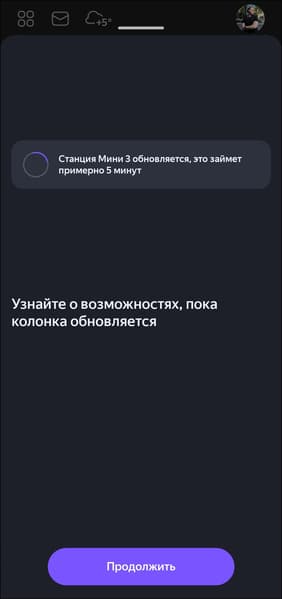 После подключения к сети «Станция Мини» проверяет наличие обновлений встроенного ПО, если они есть — предлагает установить. Занимает это обычно от 3 до 5 минут.