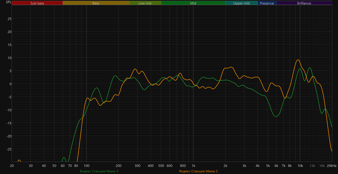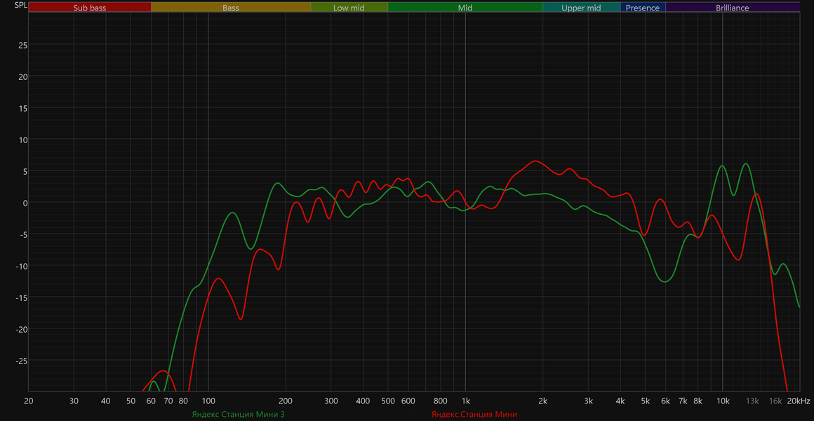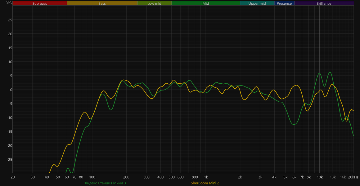 Вышедшая недавно SberBoom Mini 2 и в области НЧ-диапазона не отстает, и звучит куда приятнее и ровнее — тут однозначная победа. А вот с прошлой SberBoom Mini почти паритет — «особенности» у каждой колонки свои, но в целом по уровню сбалансированности звучания они отличаются мало.