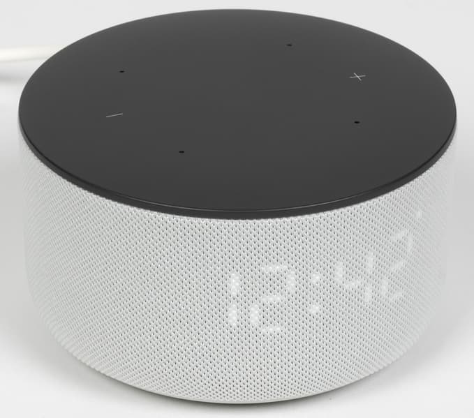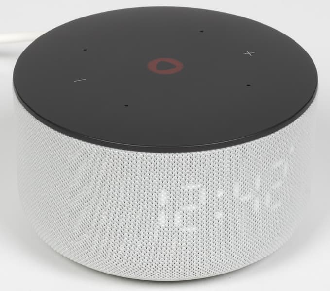 Экран вновь состоит из четырех семисегментных индикаторов, плюс двух точек-разделителей посредине и одной в правом верхнем углу — она служит для обозначения градусов и в качестве значка будильника. Возможности экрана чуть расширены — в частности, с его помощью Алиса может «строить глазки», выражая свои «эмоции». Нечто подобное мы уже видели в других колонках Яндекса, в частности — «Яндекс Станции Лайт 2». Также на экране могут демонстрироваться прогноз погоды (только температура), время, громкость и так далее.