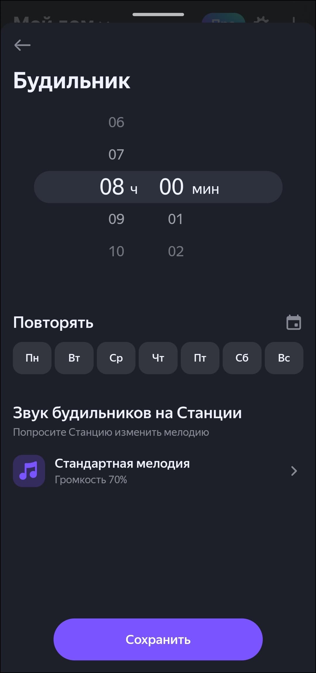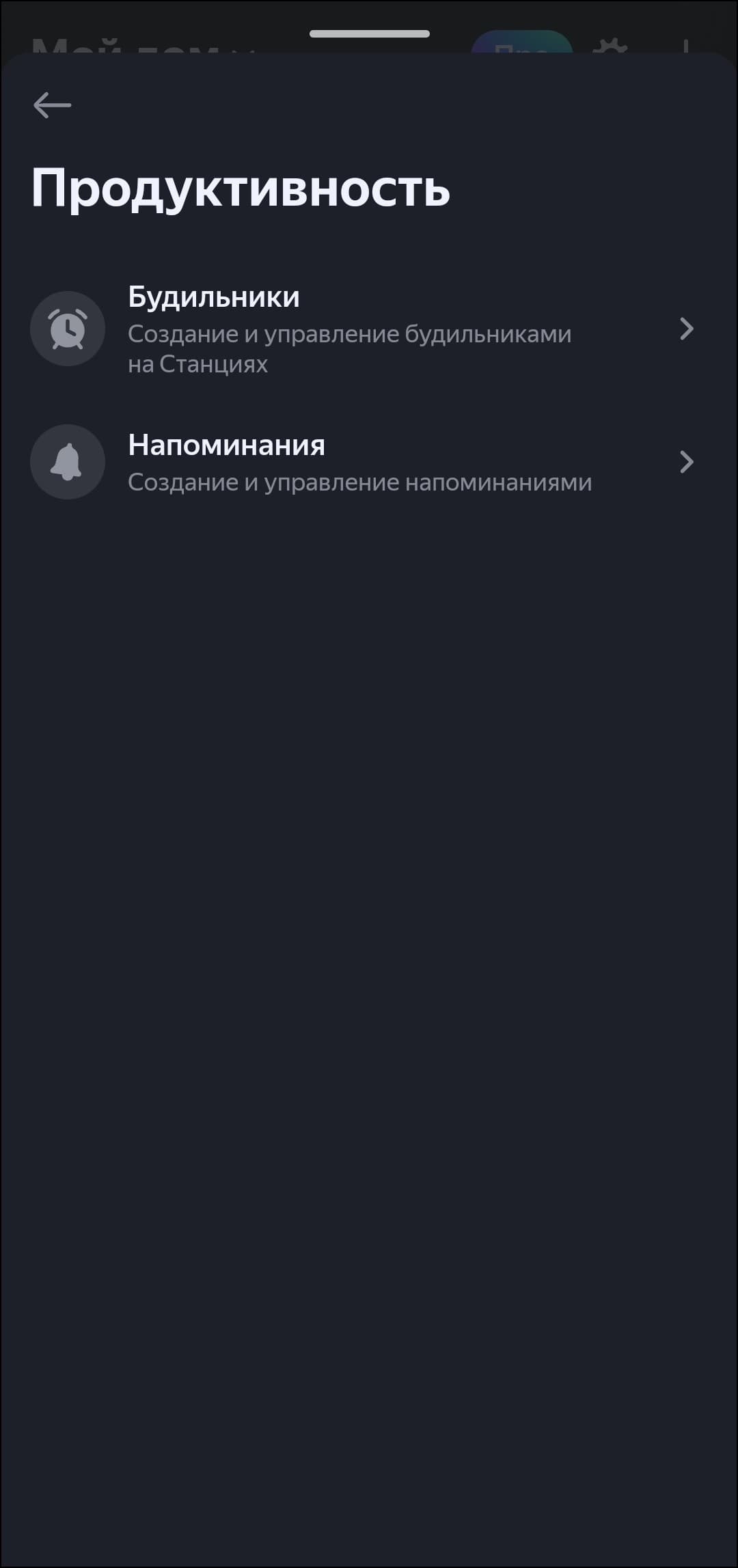 Управление будильниками раньше осуществлялось только с помощью голосового ассистента, что не всегда было удобно. Теперь их можно добавлять и редактировать еще и из приложения — иногда так проще и нагляднее. А еще это позволяет поставить будильник, не разбудив голосовыми командами тех, кто уже спит.