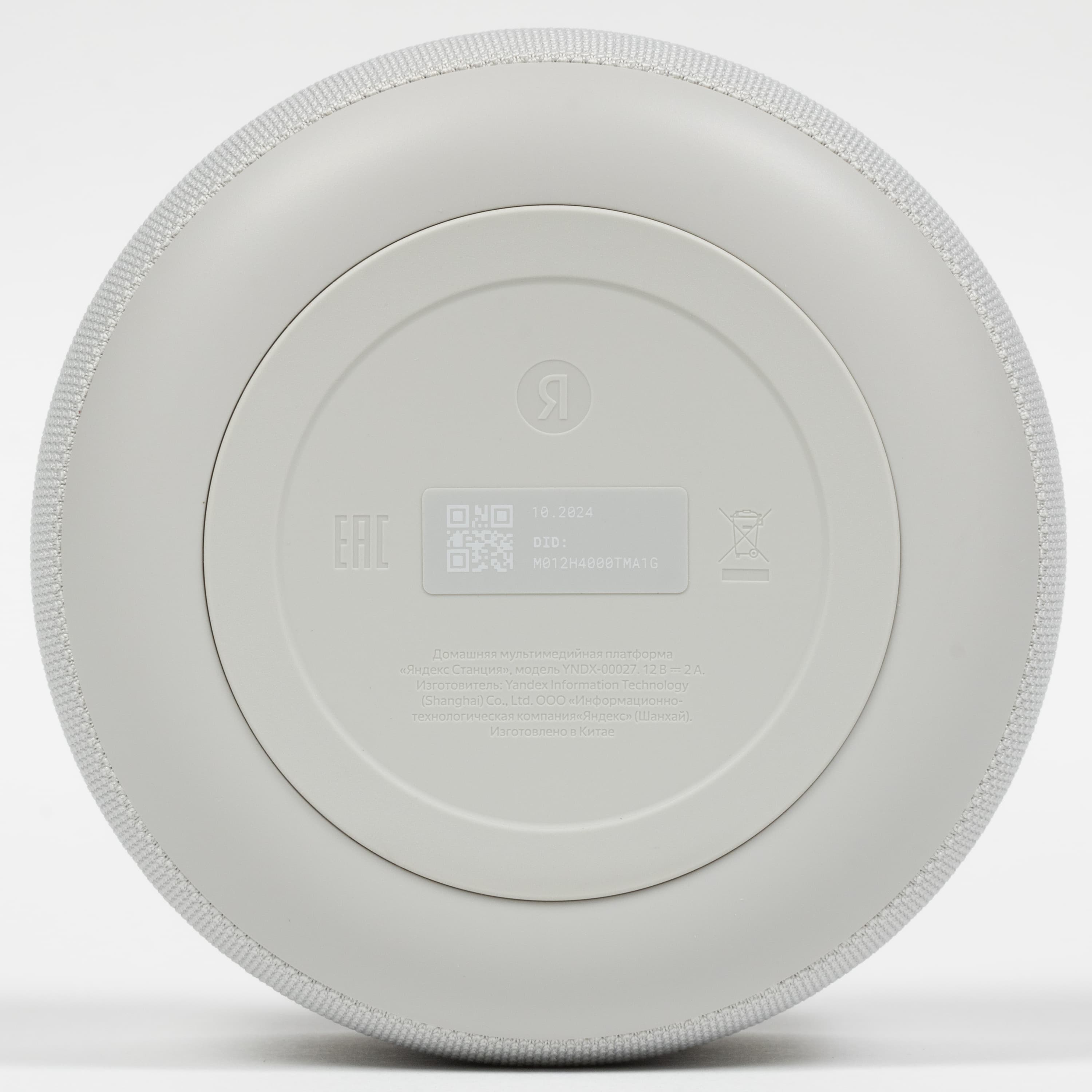 На дно колонки помещена силиконовая накладка, обеспечивающая устойчивое размещение на горизонтальной поверхности. На нее нанесены логотип, значки систем сертификации и краткая информация об устройстве.