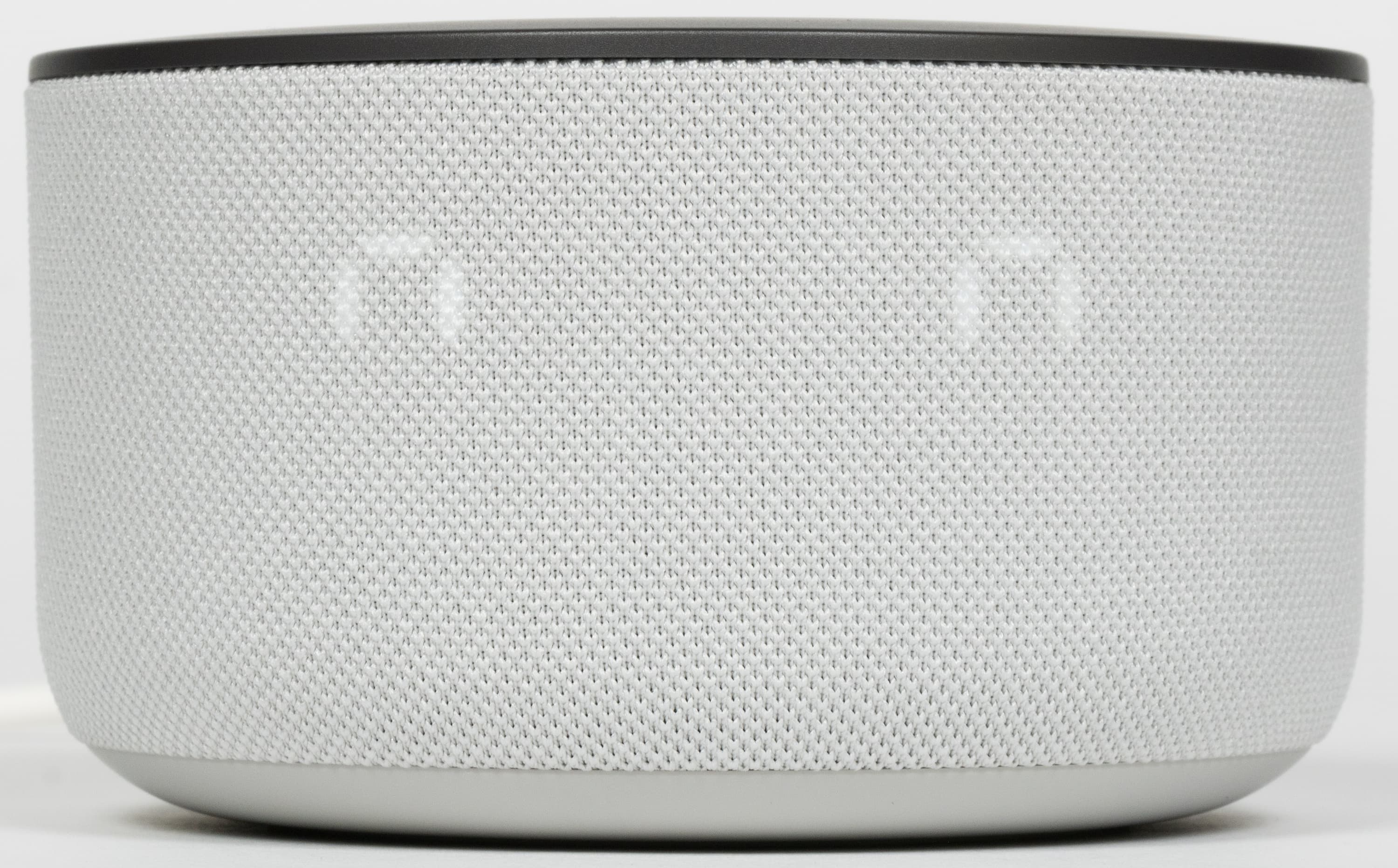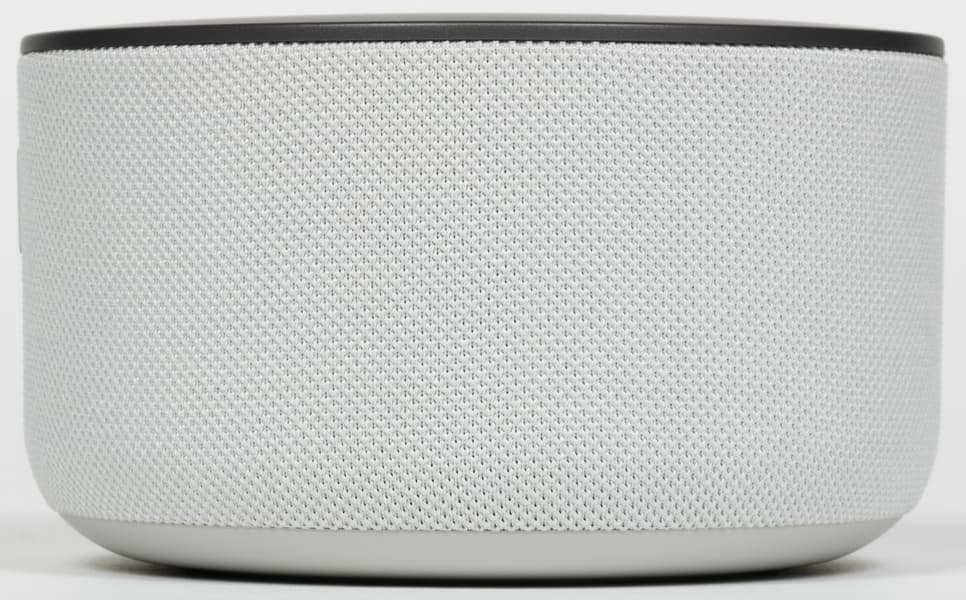 Боковая поверхность обтянута тканью, приятной как на вид, так и на ощупь. У нас на тестировании была самая светлая модель, потому мы могли в полной мере оценить устойчивость покрытия к загрязнениям. Водоотталкивающей пропитки нет, жидкость быстро впитывается в ткань, что не очень хорошо — от разного рода брызг колонку лучше защитить. Что же касается пыли и пятен от прикосновений — они практически не появляются, либо слабо заметны на тканевой поверхности.