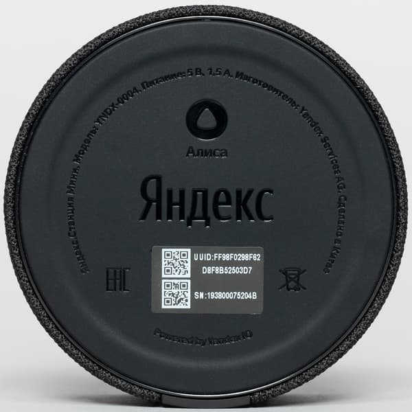 Работает «Яндекс.Станция Мини» только от сети. Многие пользователи непрозрачно намекали «Яндексу», что неплохо было бы выпустить портативную версию, которую можно легко перемещать по квартире. Но, видимо, не в этот раз. Соответственно, первым делом подключаем устройство к сети с помощью комплектного блока питания.