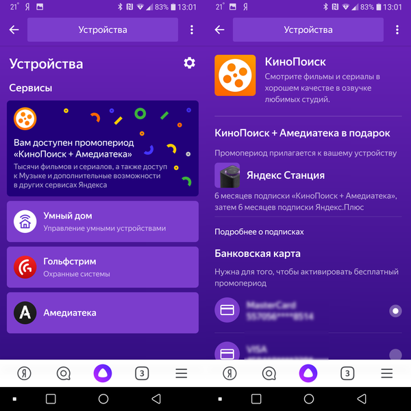 Еще одно приятное обновление — возможность привязать карту для быстрой оплаты. Раньше после ознакомления с описанием платного контента пользователь давал команду на запуск, после чего был вынужден брать в руки телефон и подтверждать платеж. Теперь этого можно не делать — нужная сумма спишется автоматически. Возможность потратить деньги с помощью голосовой команды вызывает странное ощущение, потому для обеспечения безопасности можно привязать виртуальную карту (к примеру, «Яндекс.Денег»), где хранить минимальную сумму.