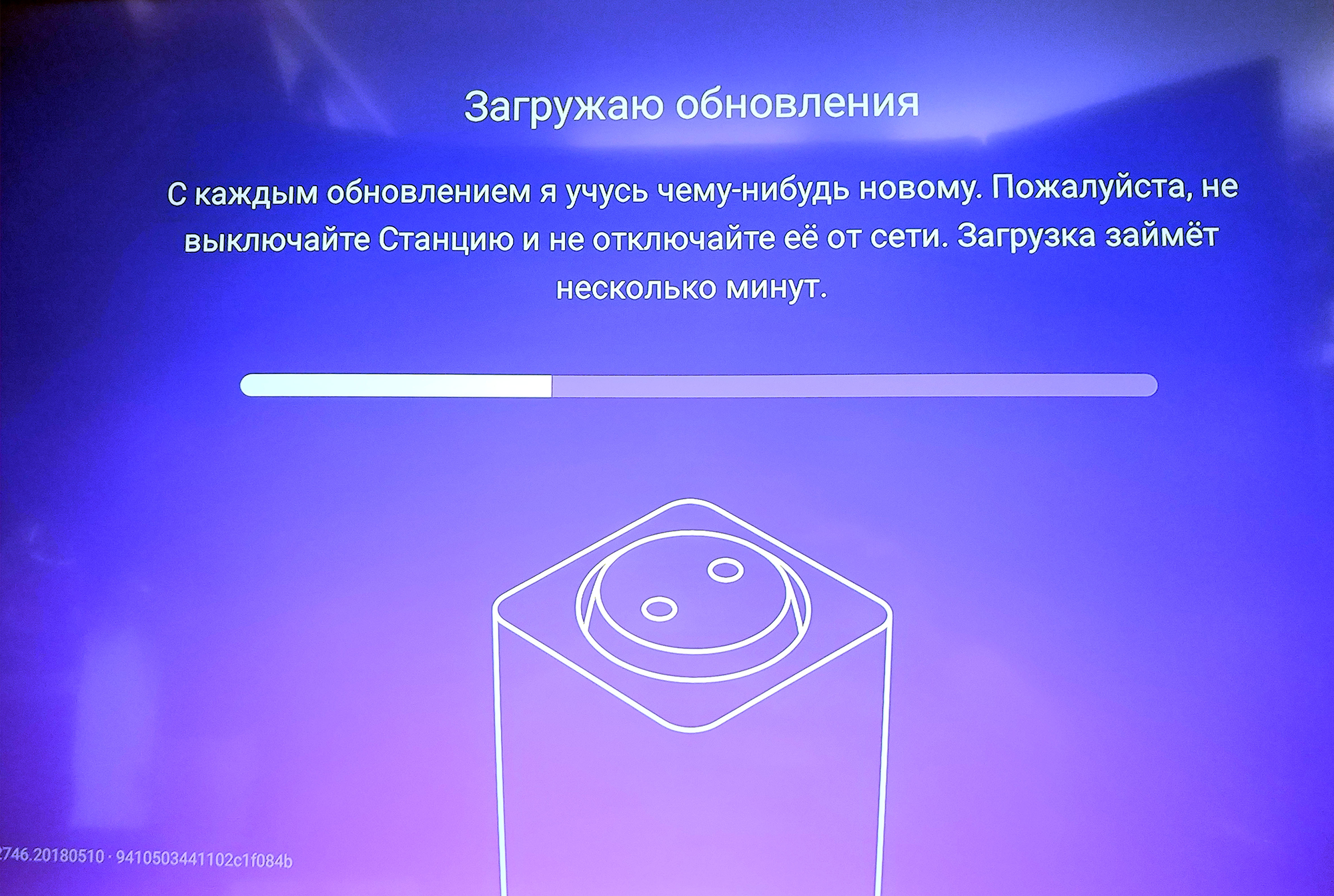 И вот тут нас постигла неудача. Колонка несколько раз сообщала о том, что подключиться не удается. В итоге мы вспомнили о том, что видели ряд отзывов пользователей о проблемах с подключением к сетям Wi-Fi 5 ГГц, потому решили попробовать более «классический» вариант 2,4 ГГц. И вот тут все прошло без проблем. Устройство подключилось к сети, тут же нашло себе обновление прошивки и начало его установку.