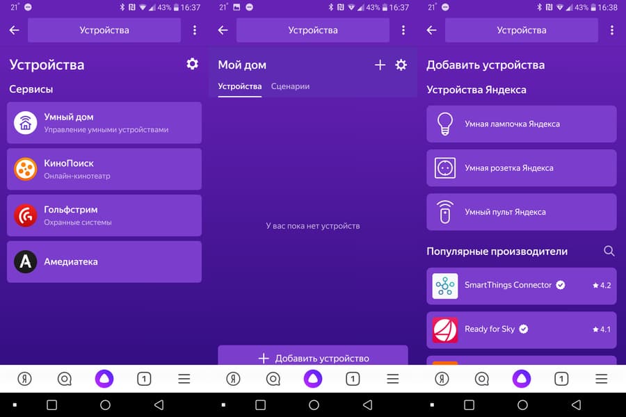 Самое заметное и ожидаемое обновление Алисы — это, конечно, собственная система «умного дома». Управлять различными устройствами можно было и раньше, но не напрямую, а с помощью «навыков» — таких как «Альфред» или «Домовенок Кузя». Например, можно было сказать: «Попроси Альфреда включить лампу» — происходил вызов навыка «Альфред», который через сервис IFTTT включал свет. Теперь все можно делать проще и напрямую.