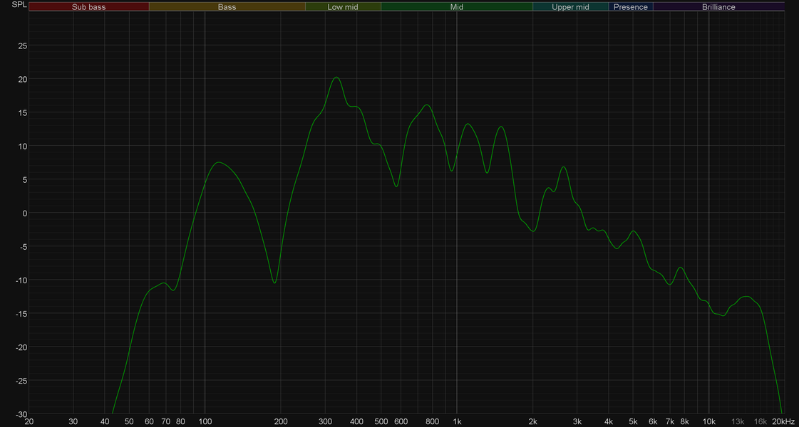 Сразу после выхода колонки пользователи жаловались на излишний акцент на низких частотах. По всей видимости, в новых версиях прошивки эта проблема решена — по субъективным ощущениям, баса стало меньше. При этом, если взглянуть на график АЧХ ниже, виден подъем в районе нижней середины, который хорошо ощущается и на слух. Также стоит отметить «горб» на резонансной частоте пассивного излучателя – по всей видимости, как раз его-то и скомпенсировали разработчики в одном из последних обновлений.