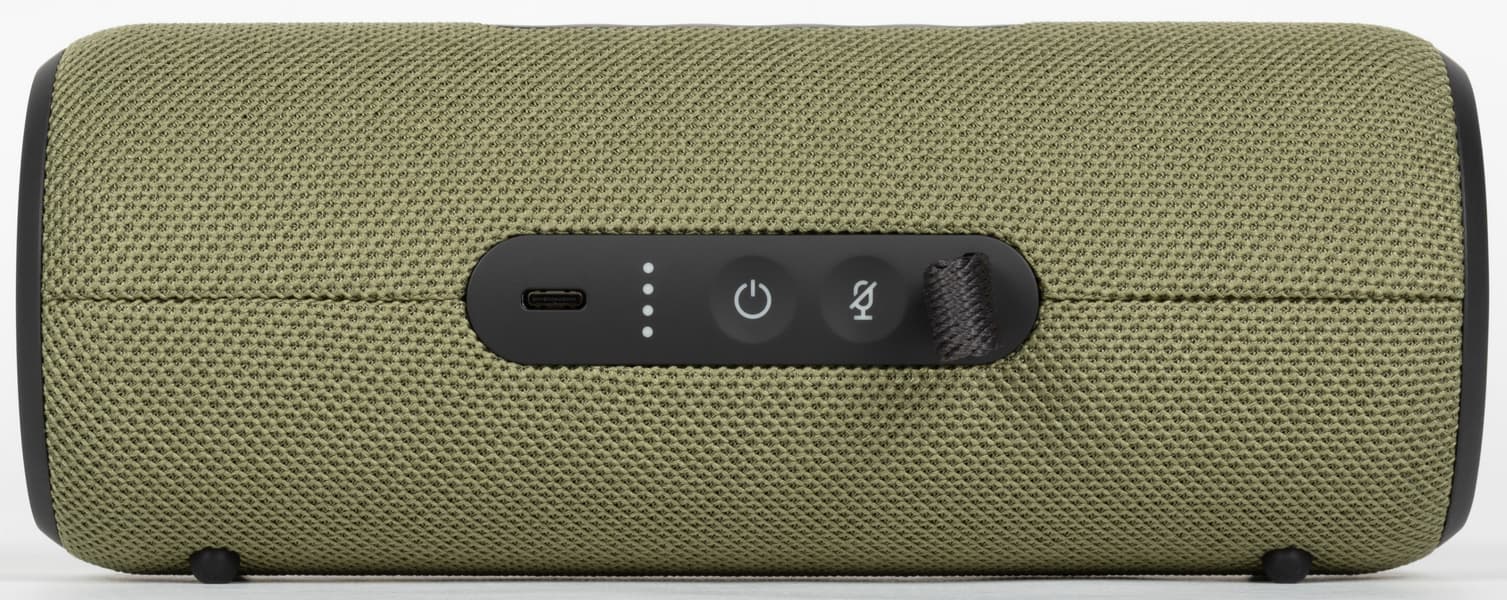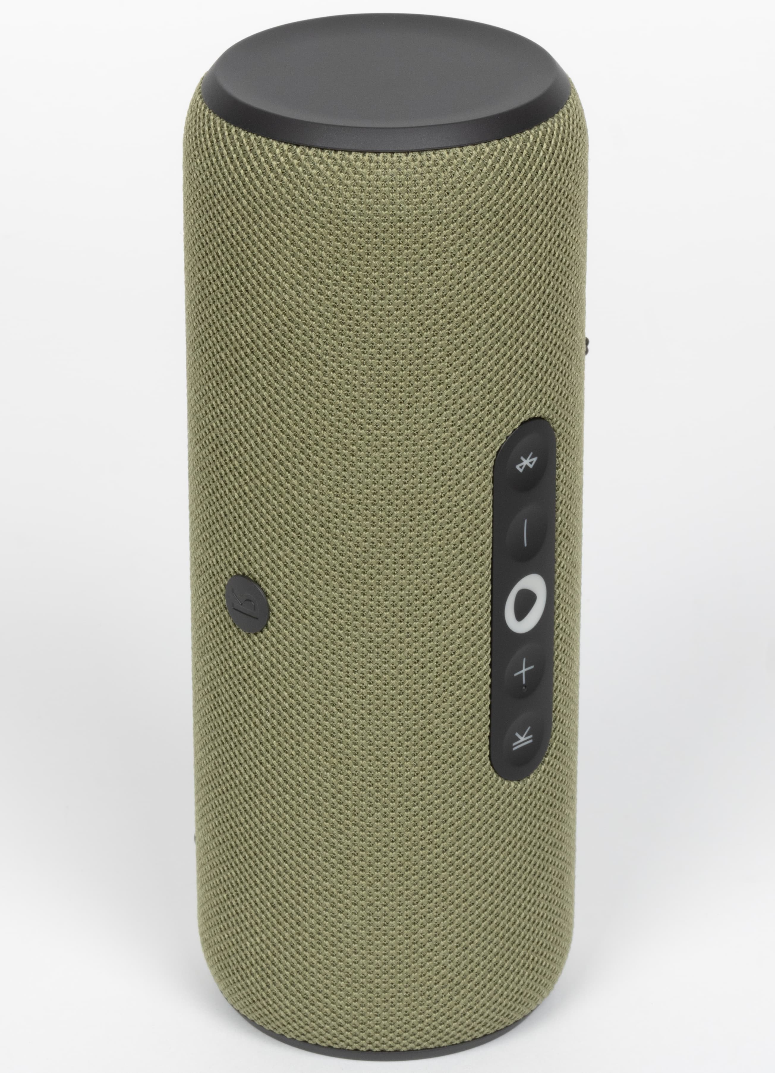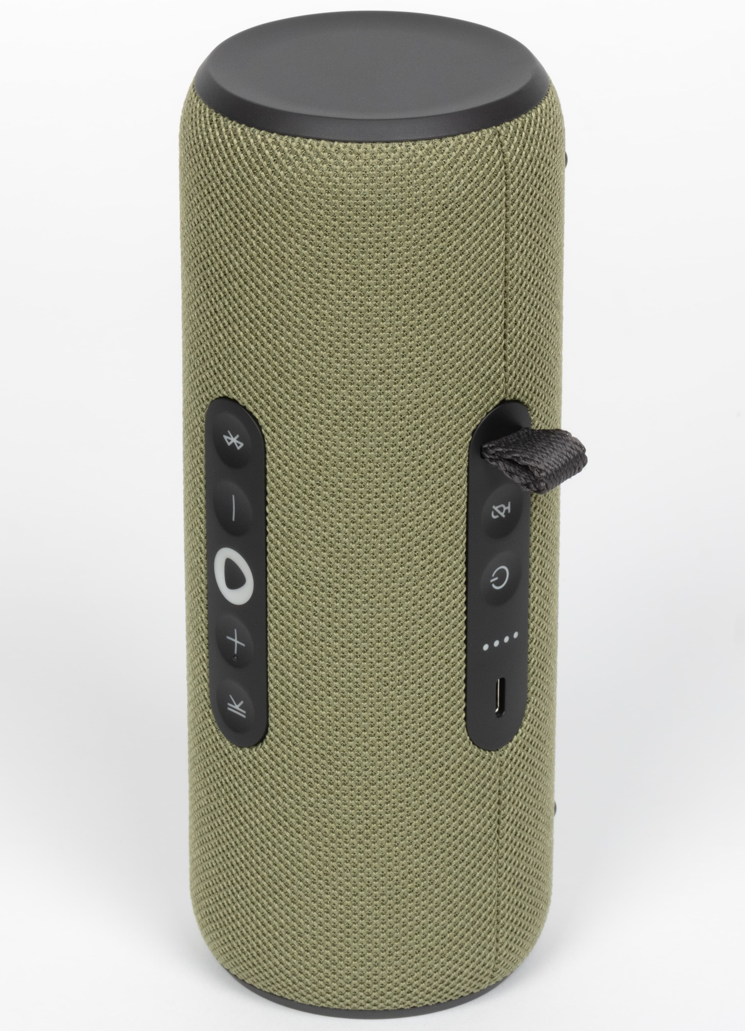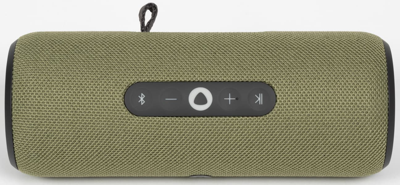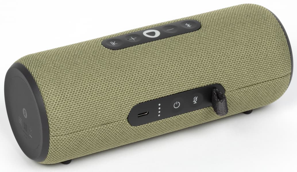 На старте продаж «Станция Стрит» будет доступна в двух цветах: черном и зеленом — нам для тестирования достался второй вариант. Планов по новым расцветкам компания пока не раскрывает, но, судя по опыту, их появление вполне вероятно. Форма корпуса у колонки классическая для переносной Bluetooth-акустики — бочкообразная. Габариты и масса — типичные для такого форм-фактора, колонку легко можно переносить в рюкзаке или небольшой сумке.